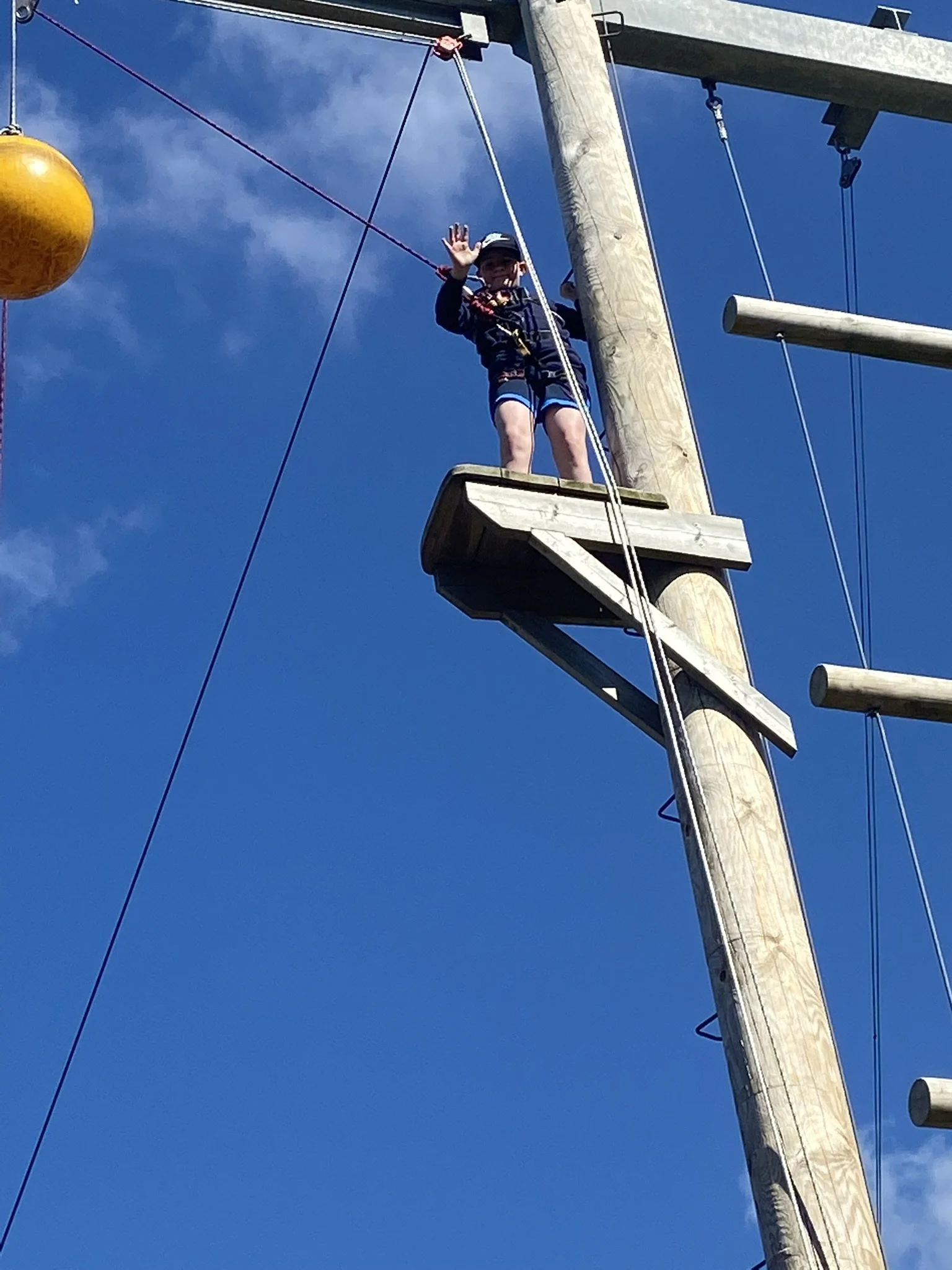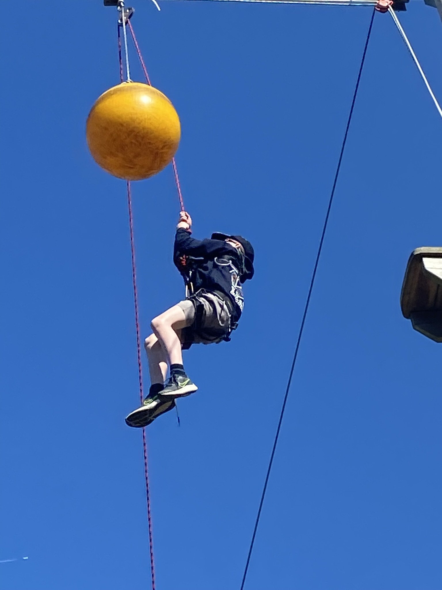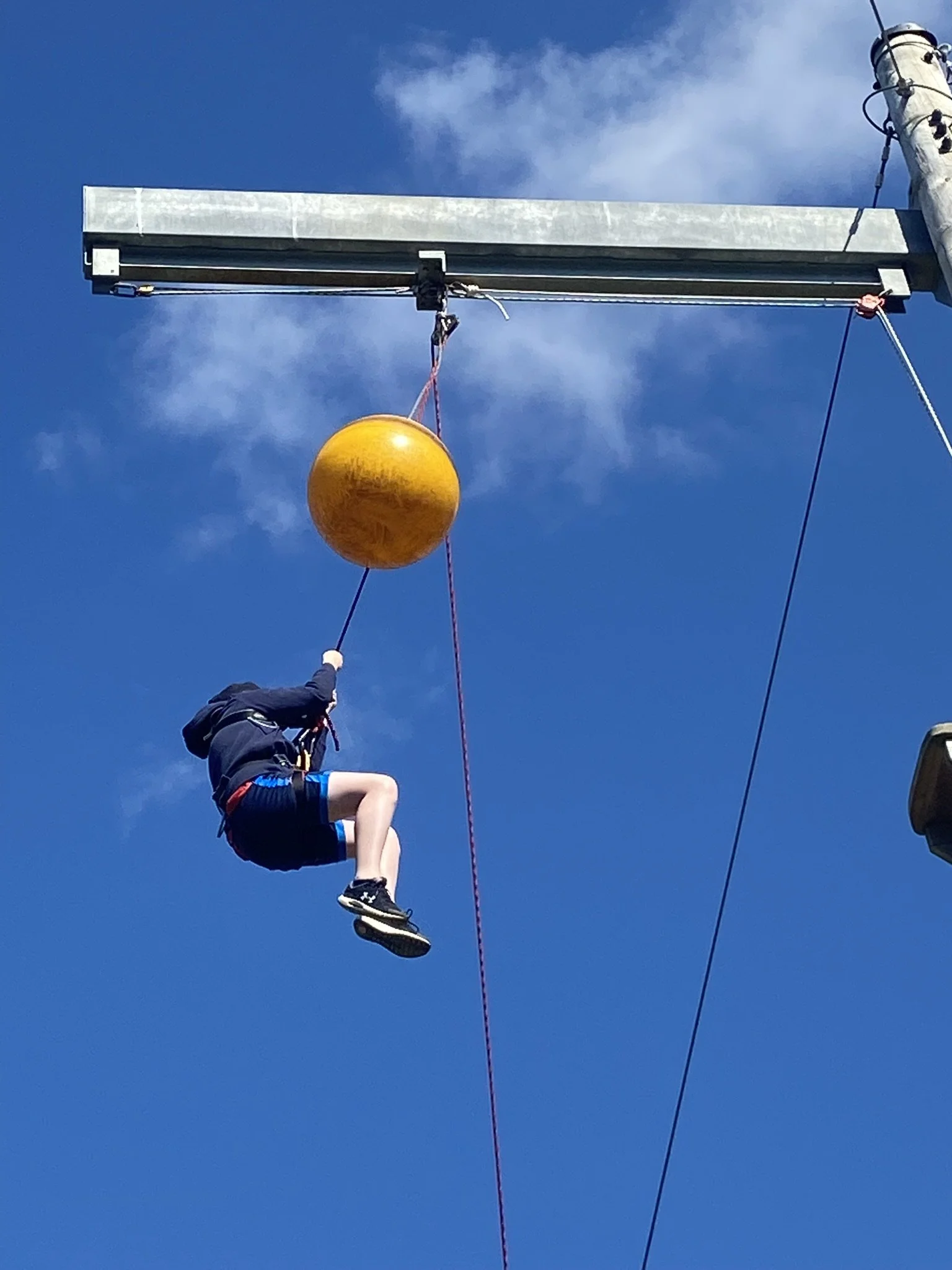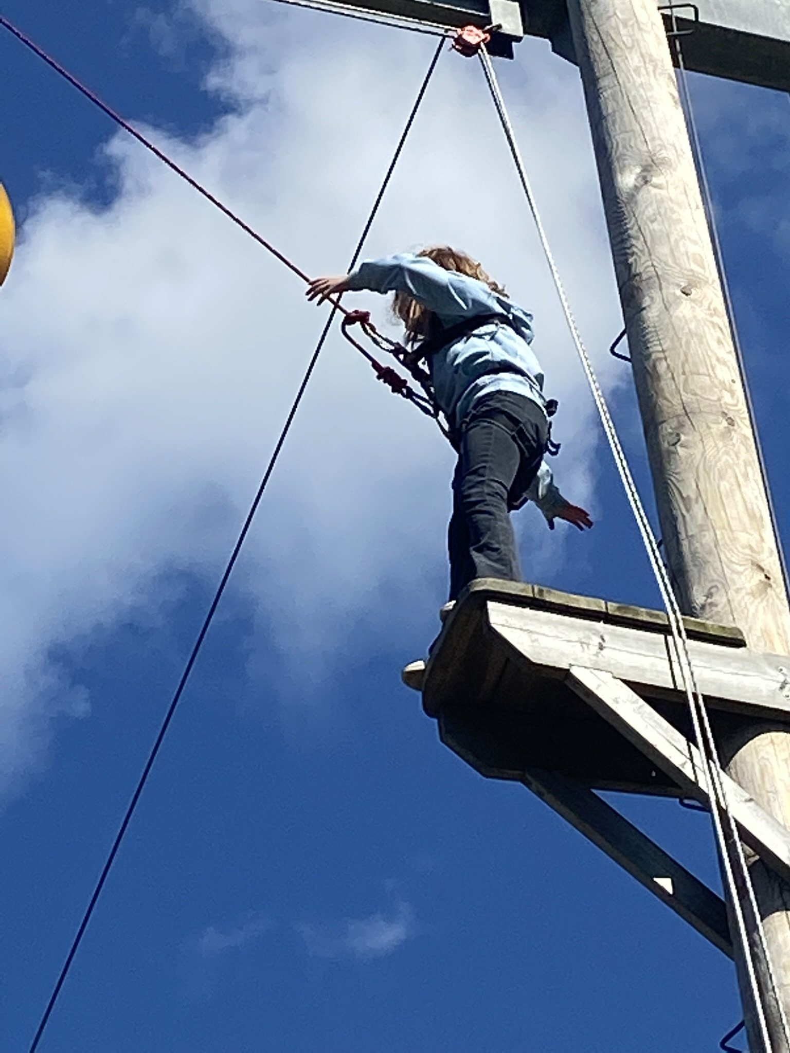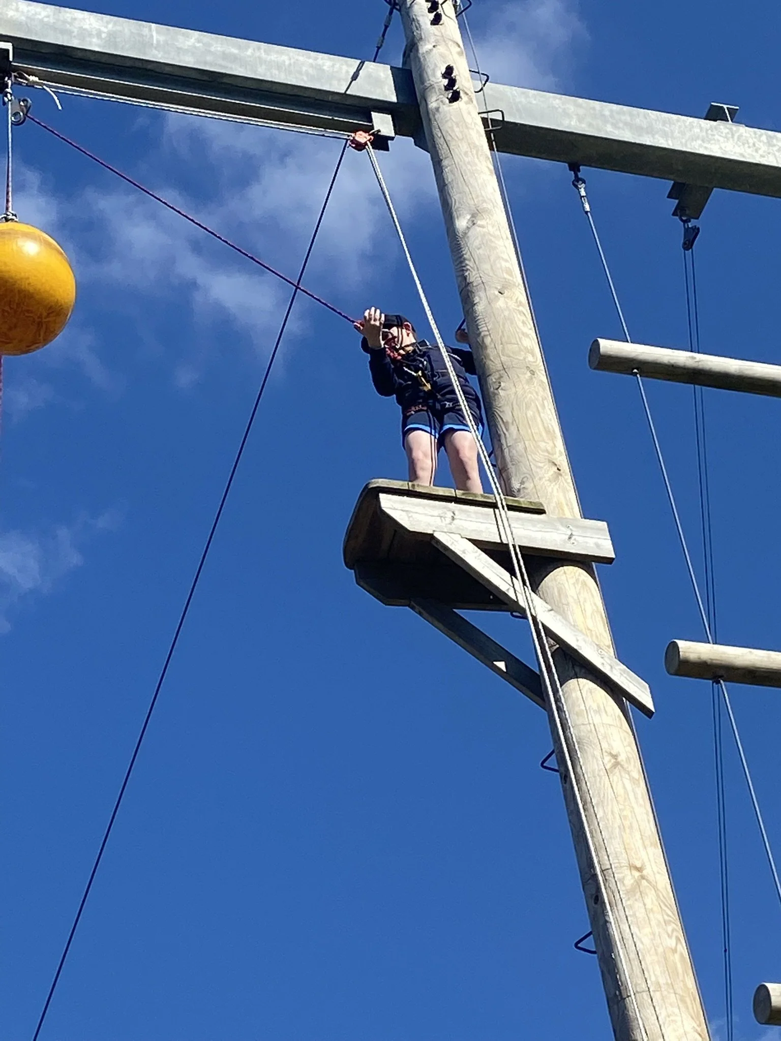 First was Trapeze, which involved climbing up a pole and onto a platform right at the top. We then had to leap off the platform, trying to touch a big orange ball, before being lowered gently to the ground by our friends, who were on the other end of the rope. All the children challenged themselves and were amazing. They should be very proud of themselves