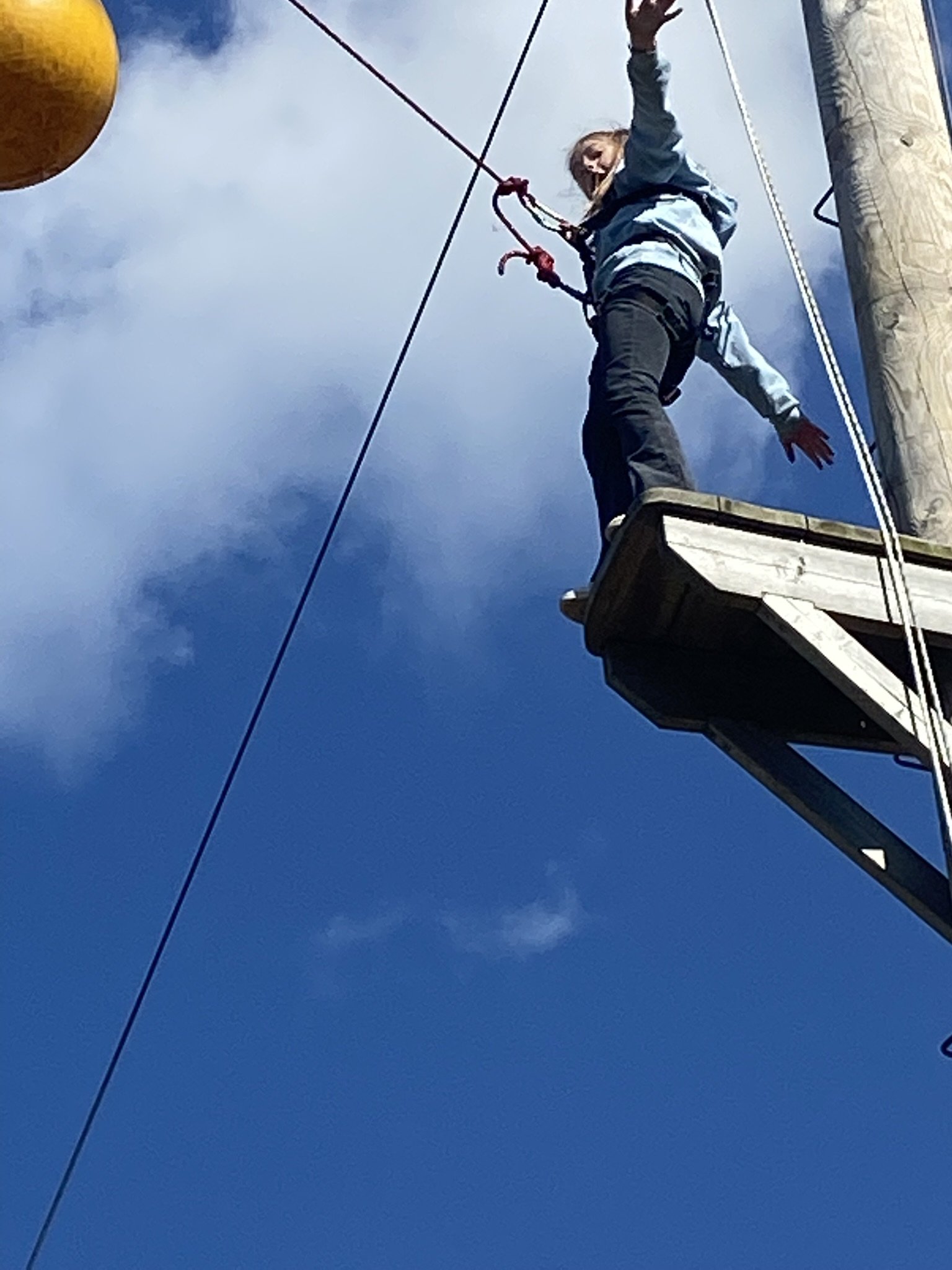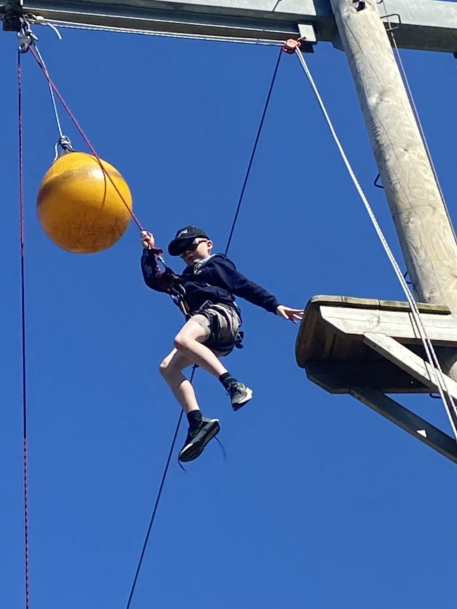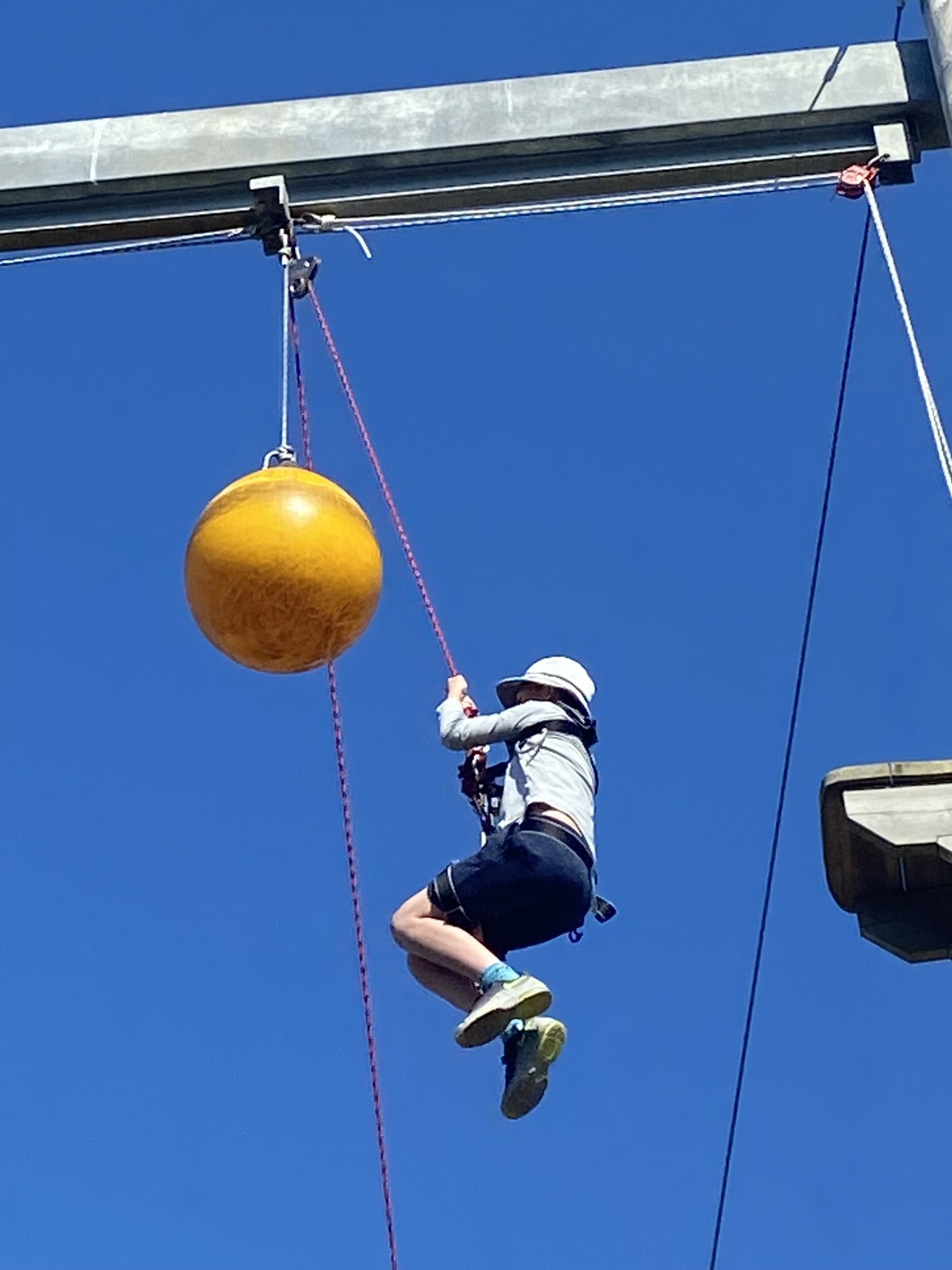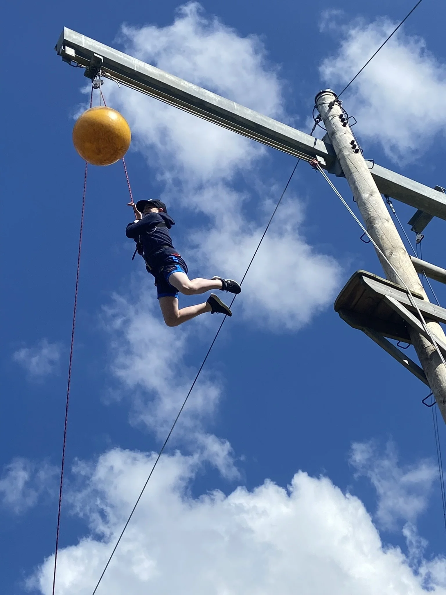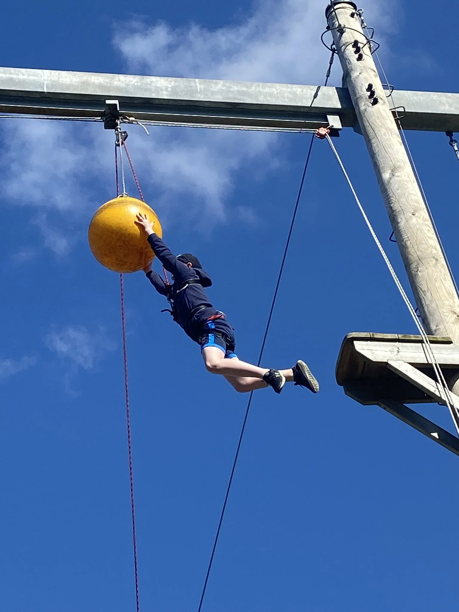 First was Trapeze, which involved climbing up a pole and onto a platform right at the top. We then had to leap off the platform, trying to touch a big orange ball, before being lowered gently to the ground by our friends, who were on the other end of the rope. All the children challenged themselves and were amazing. They should be very proud of themselves