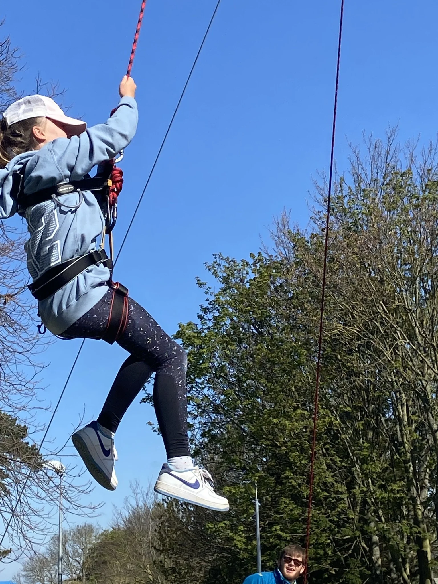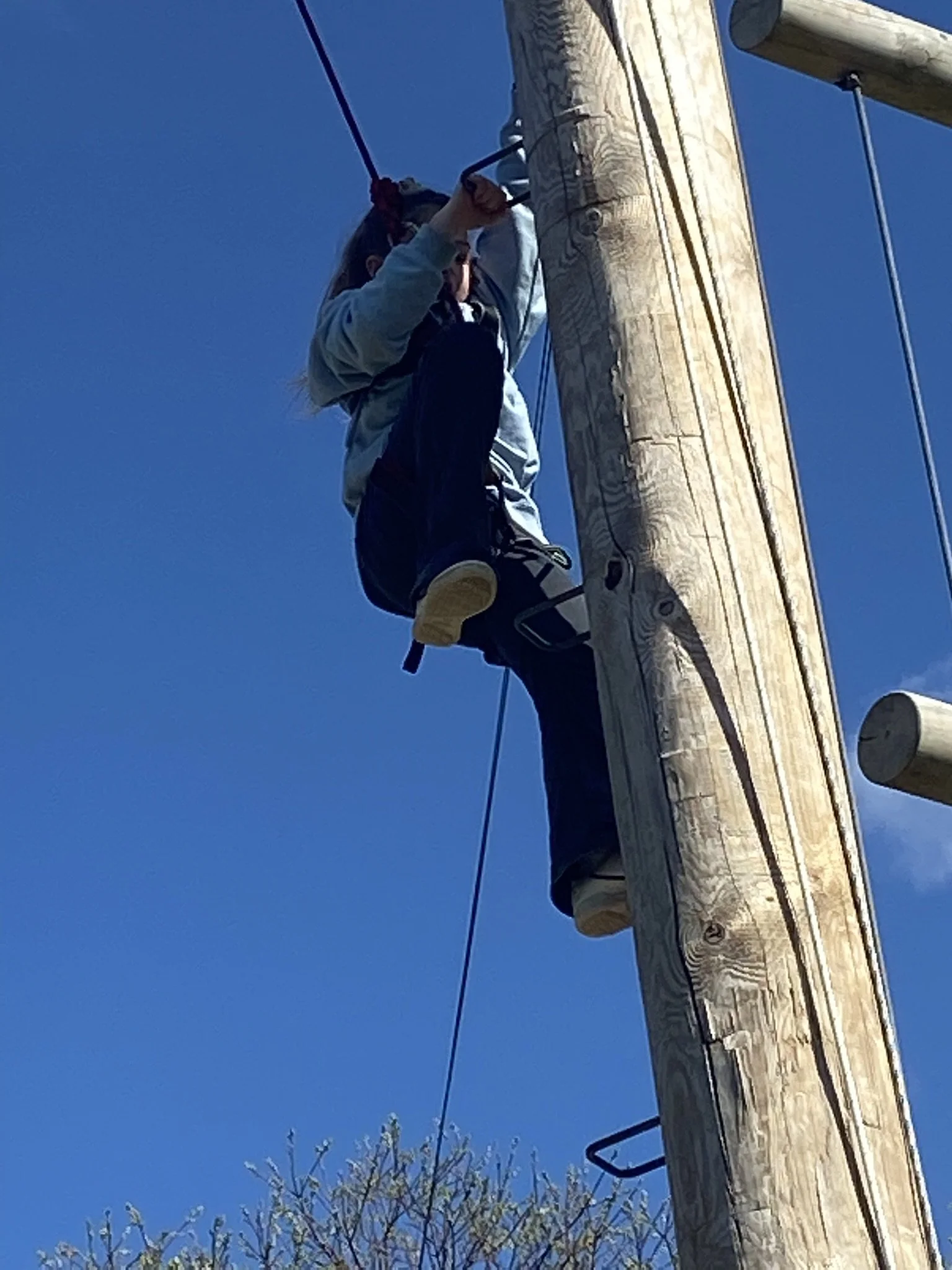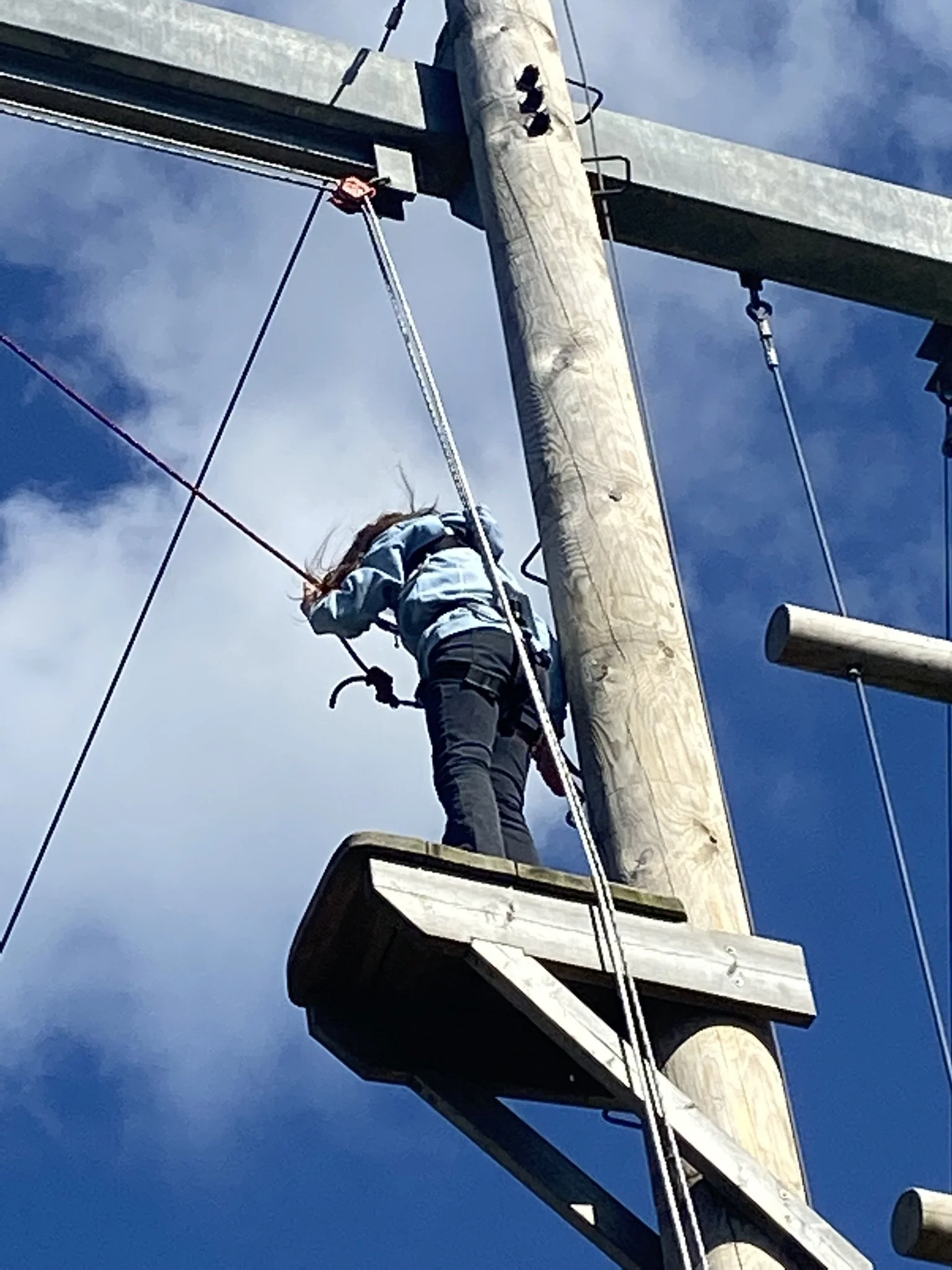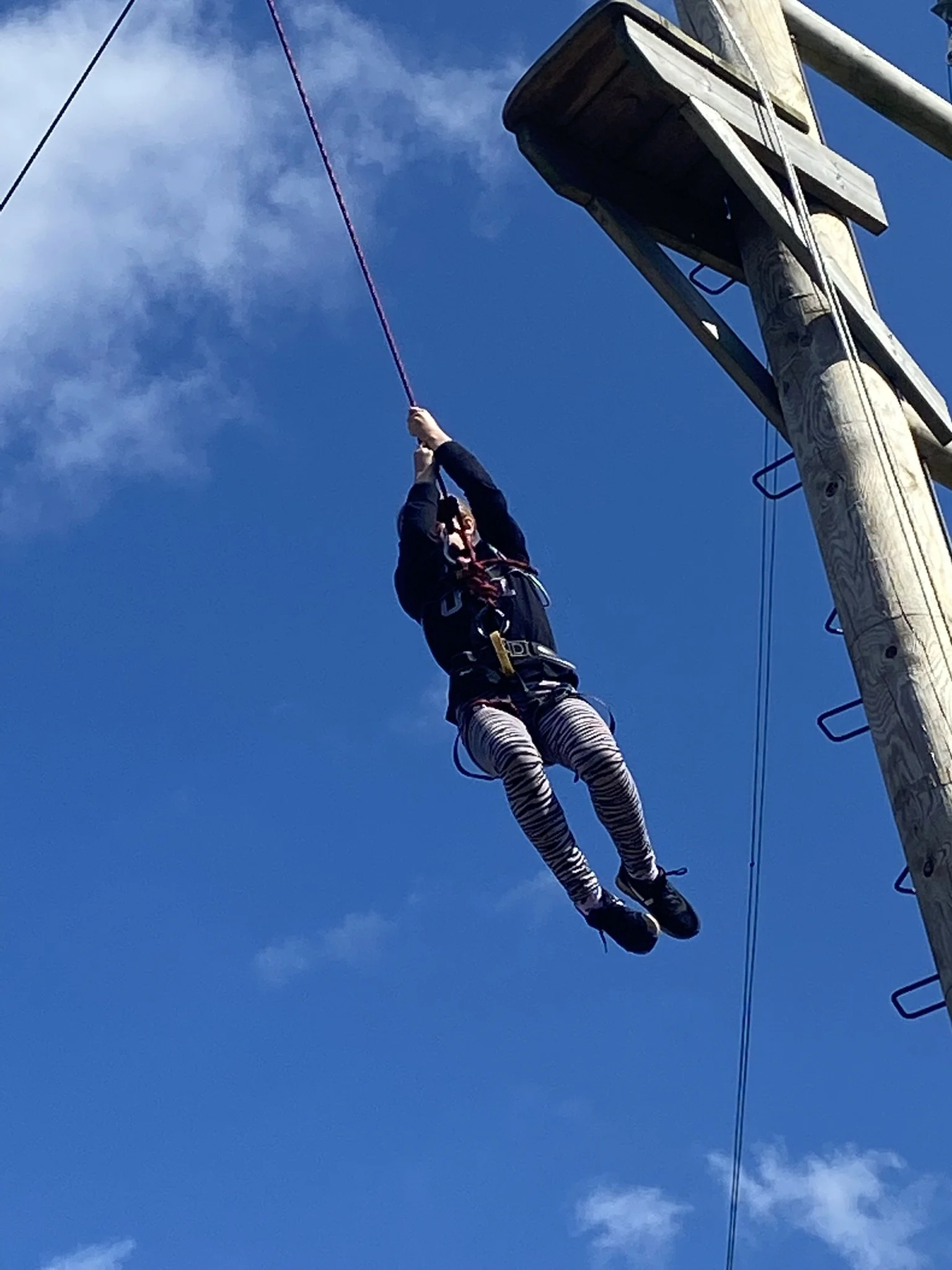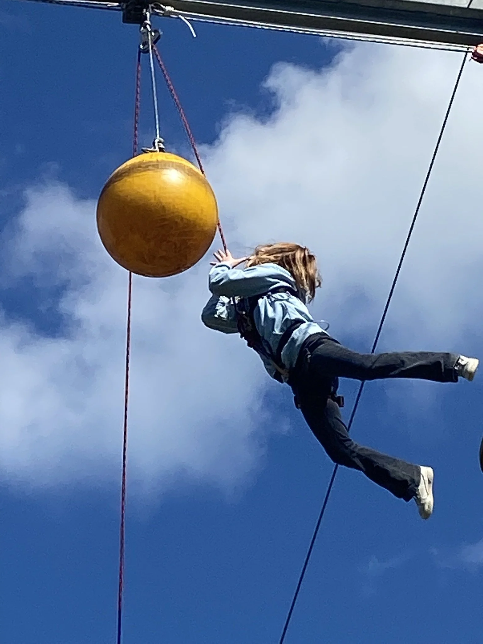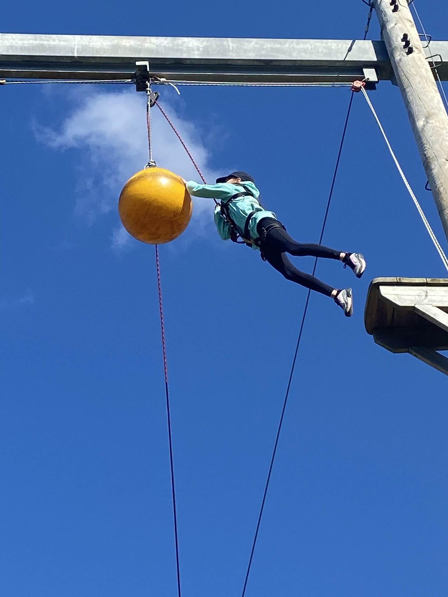 First was Trapeze, which involved climbing up a pole and onto a platform right at the top. We then had to leap off the platform, trying to touch a big orange ball, before being lowered gently to the ground by our friends, who were on the other end of the rope. All the children challenged themselves and were amazing. They should be very proud of themselves