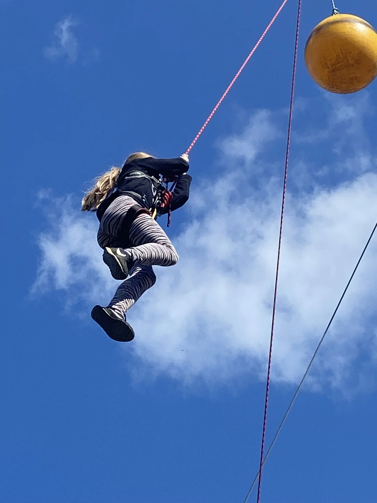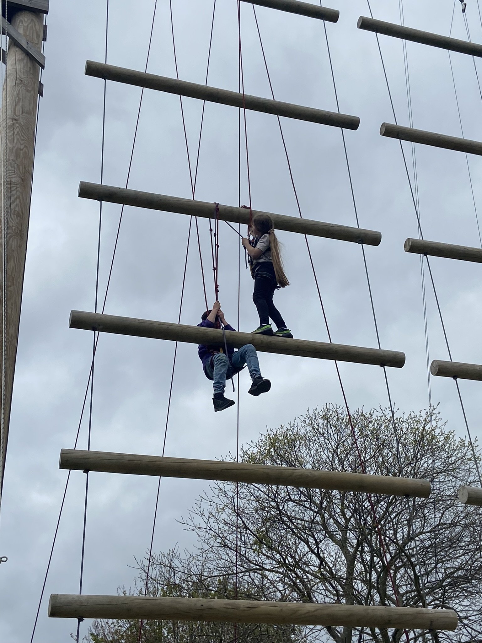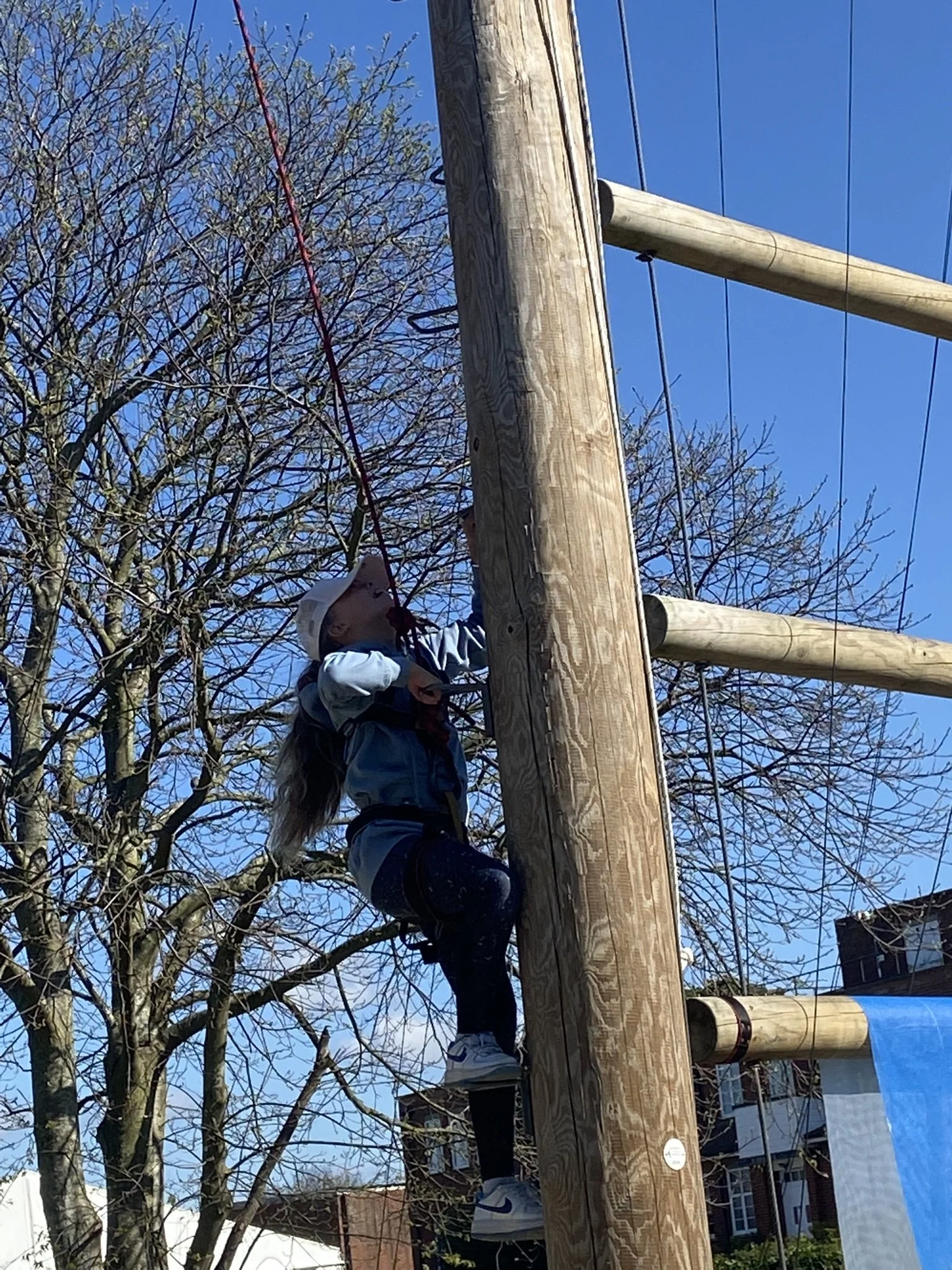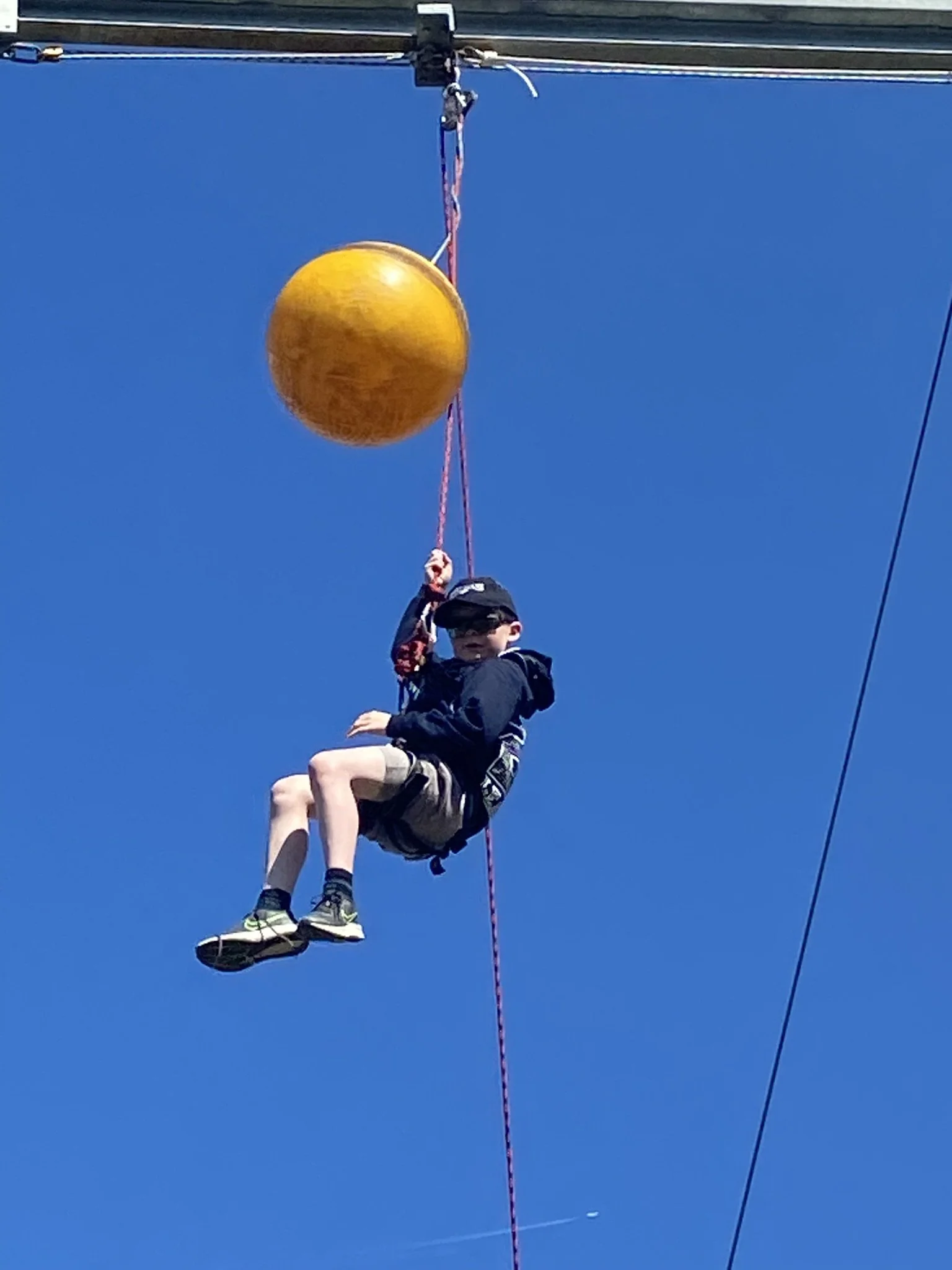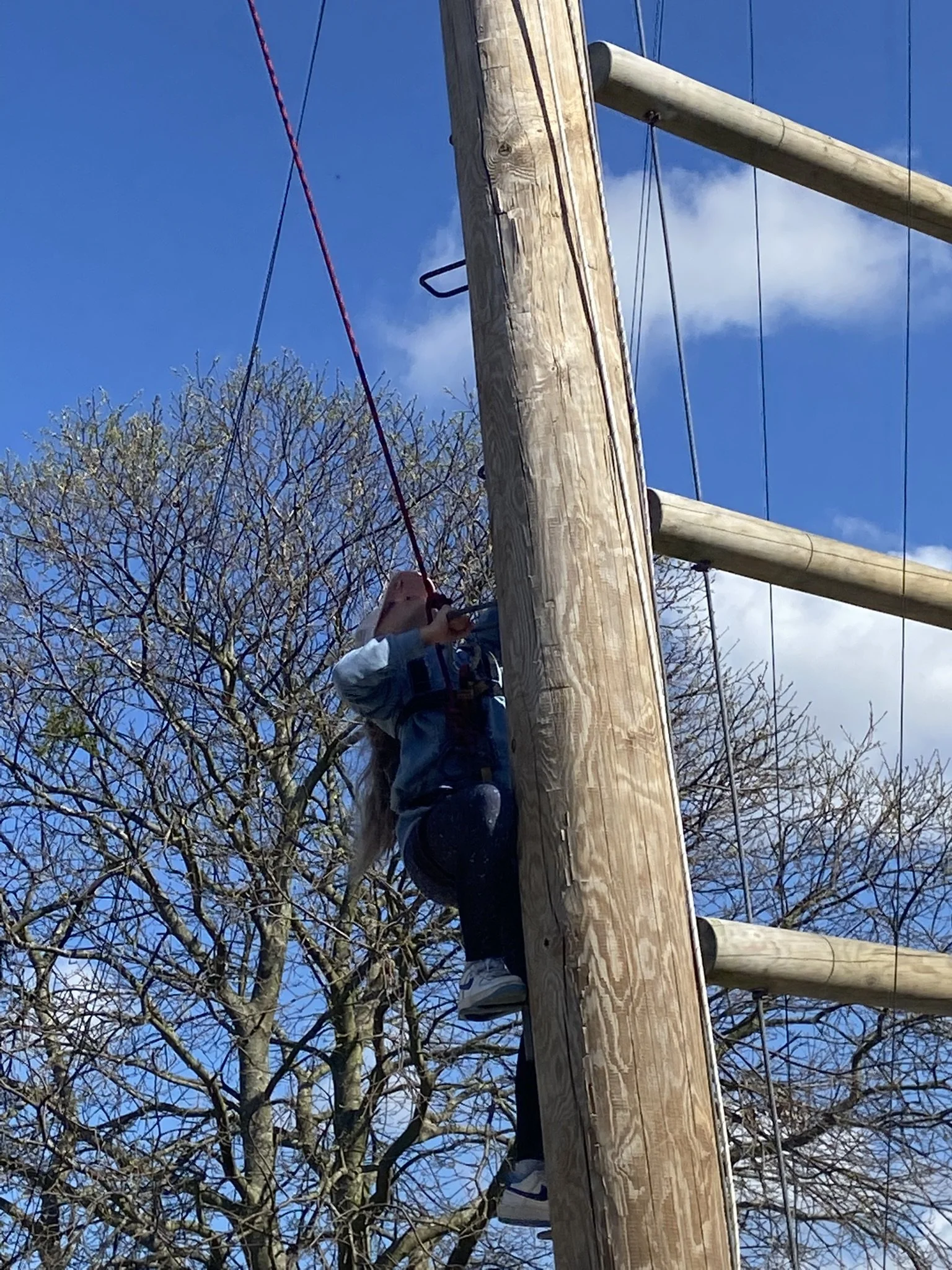 First was Trapeze, which involved climbing up a pole and onto a platform right at the top. We then had to leap off the platform, trying to touch a big orange ball, before being lowered gently to the ground by our friends, who were on the other end of the rope. All the children challenged themselves and were amazing. They should be very proud of themselves