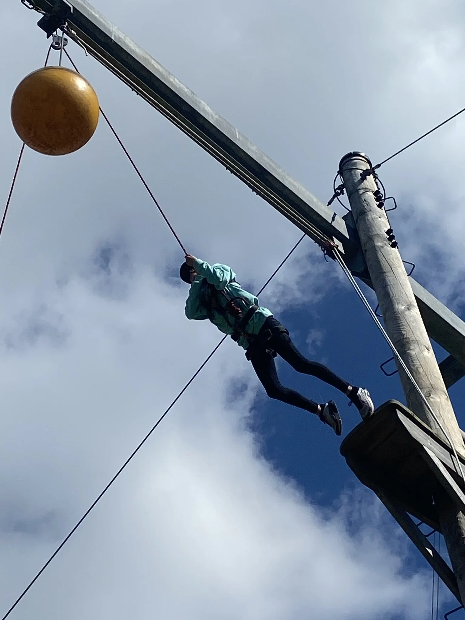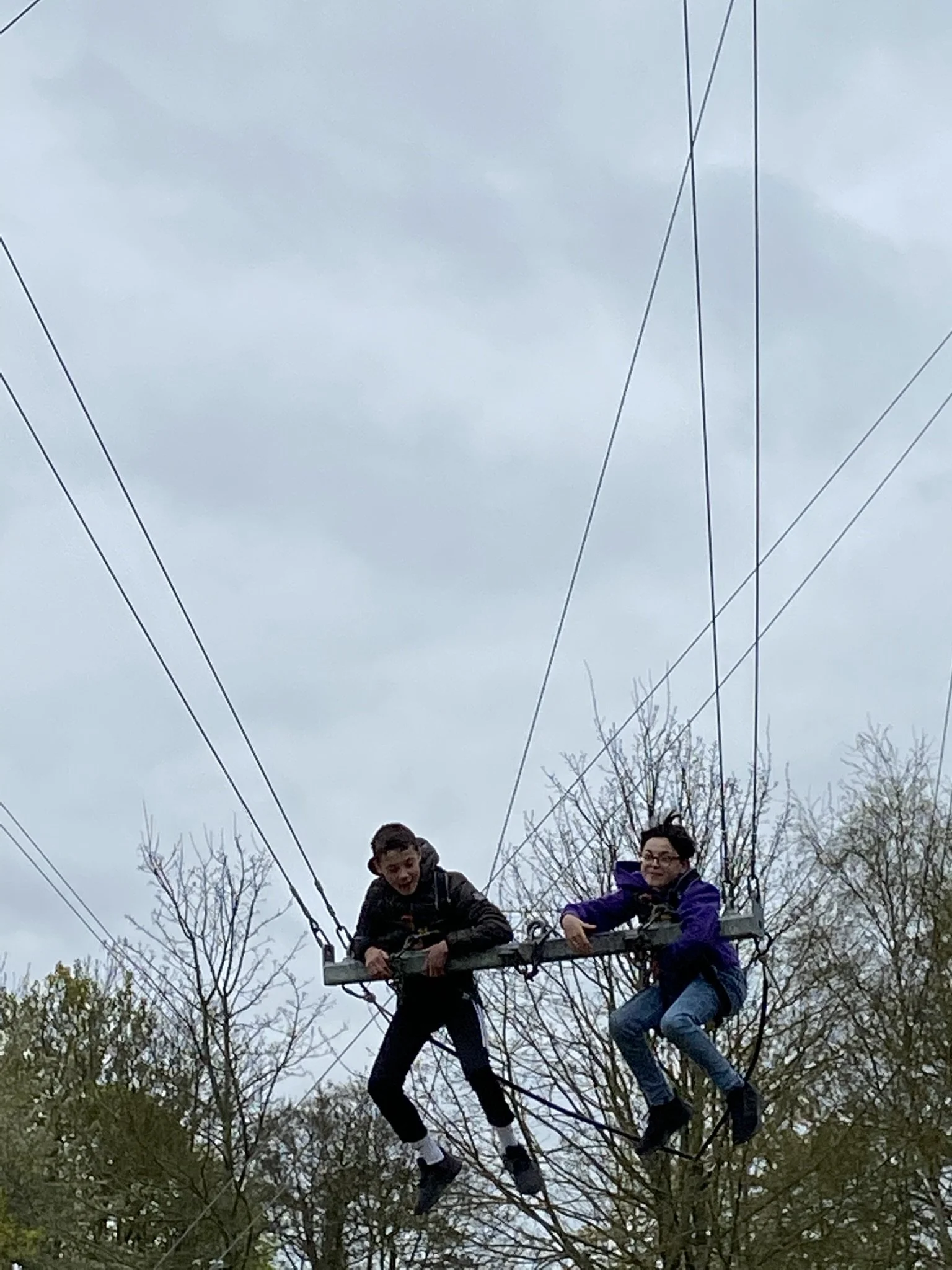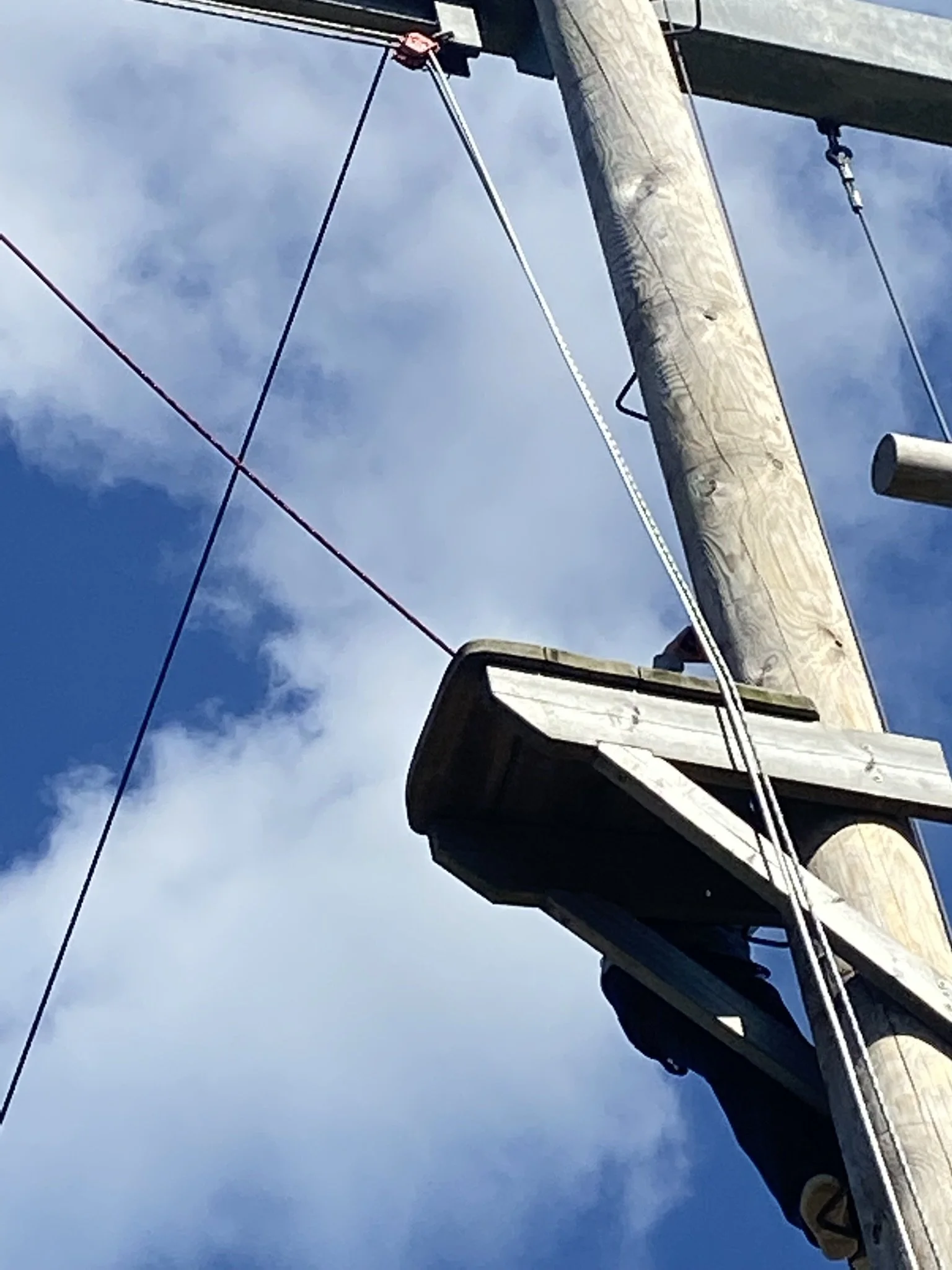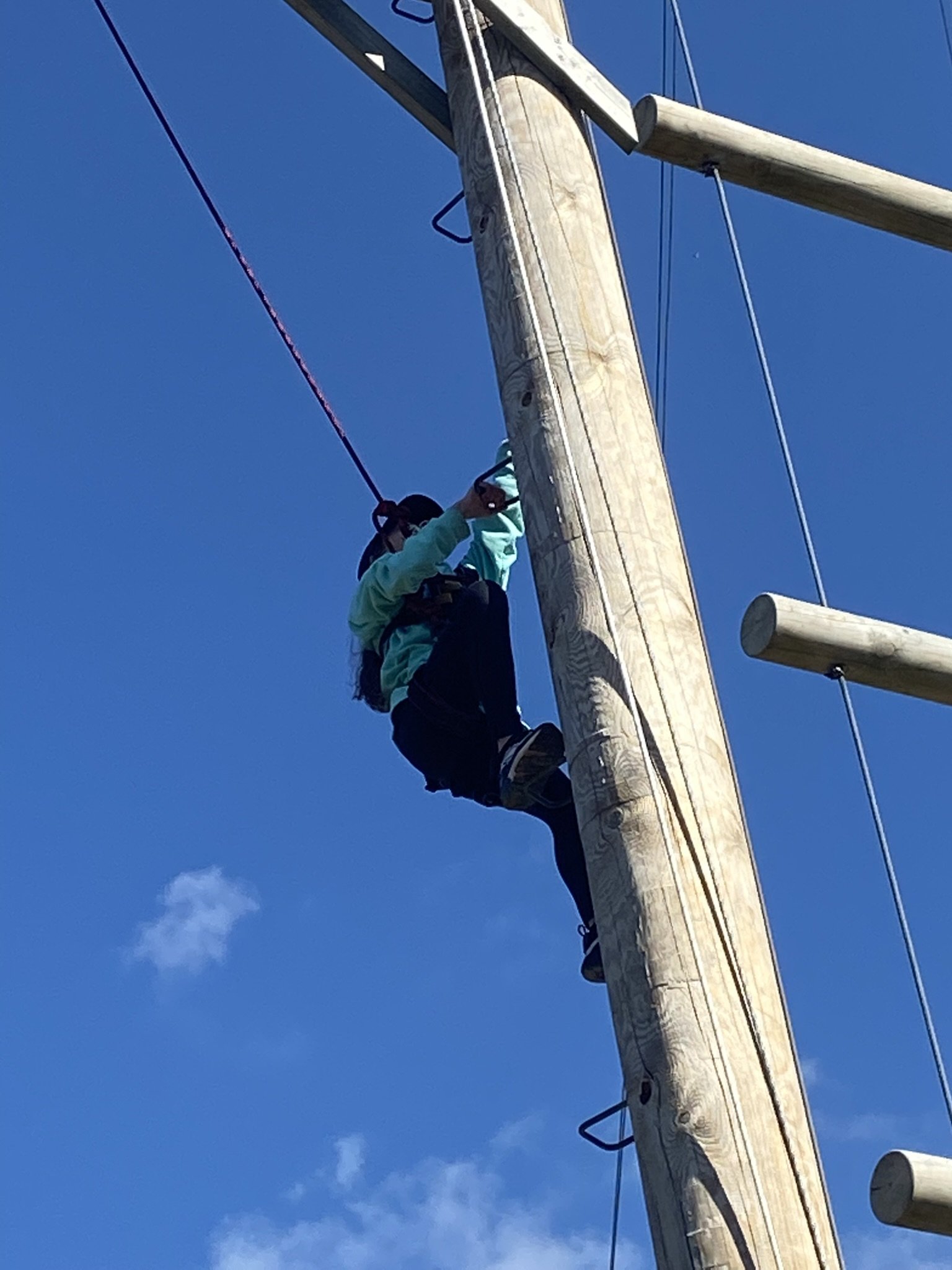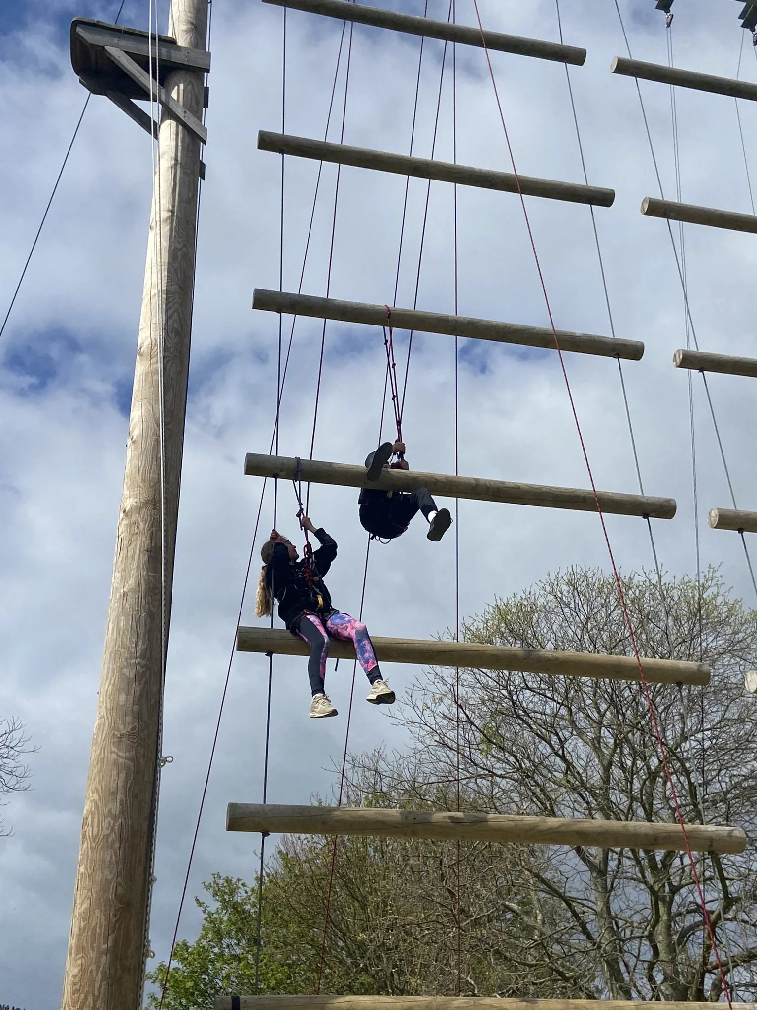 First was Trapeze, which involved climbing up a pole and onto a platform right at the top. We then had to leap off the platform, trying to touch a big orange ball, before being lowered gently to the ground by our friends, who were on the other end of the rope. All the children challenged themselves and were amazing. They should be very proud of themselves