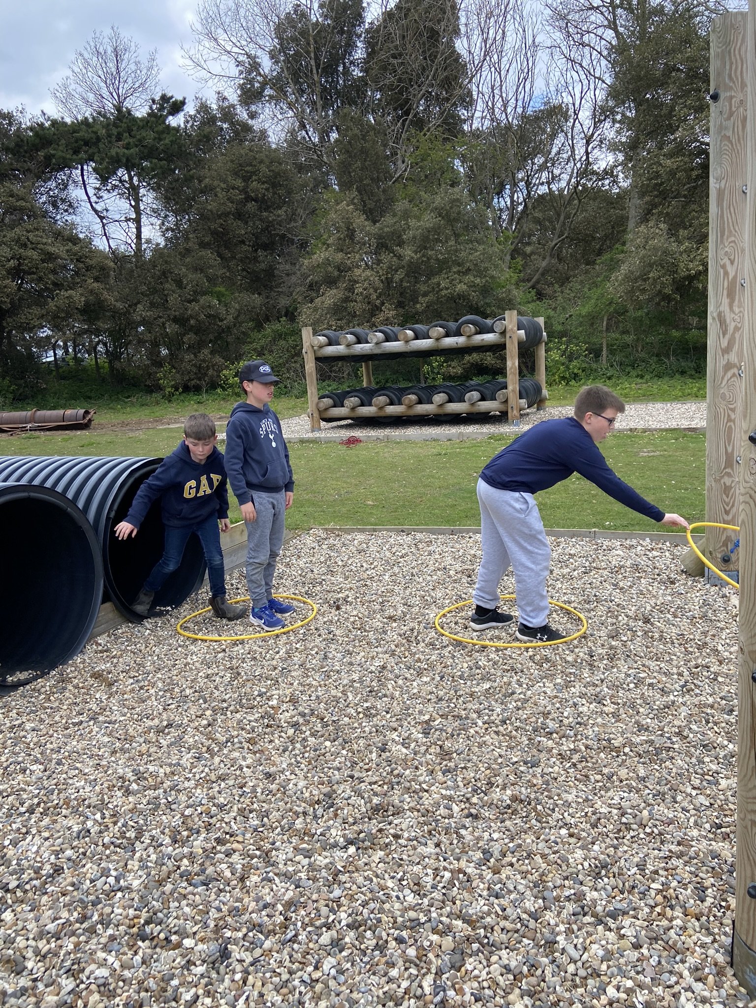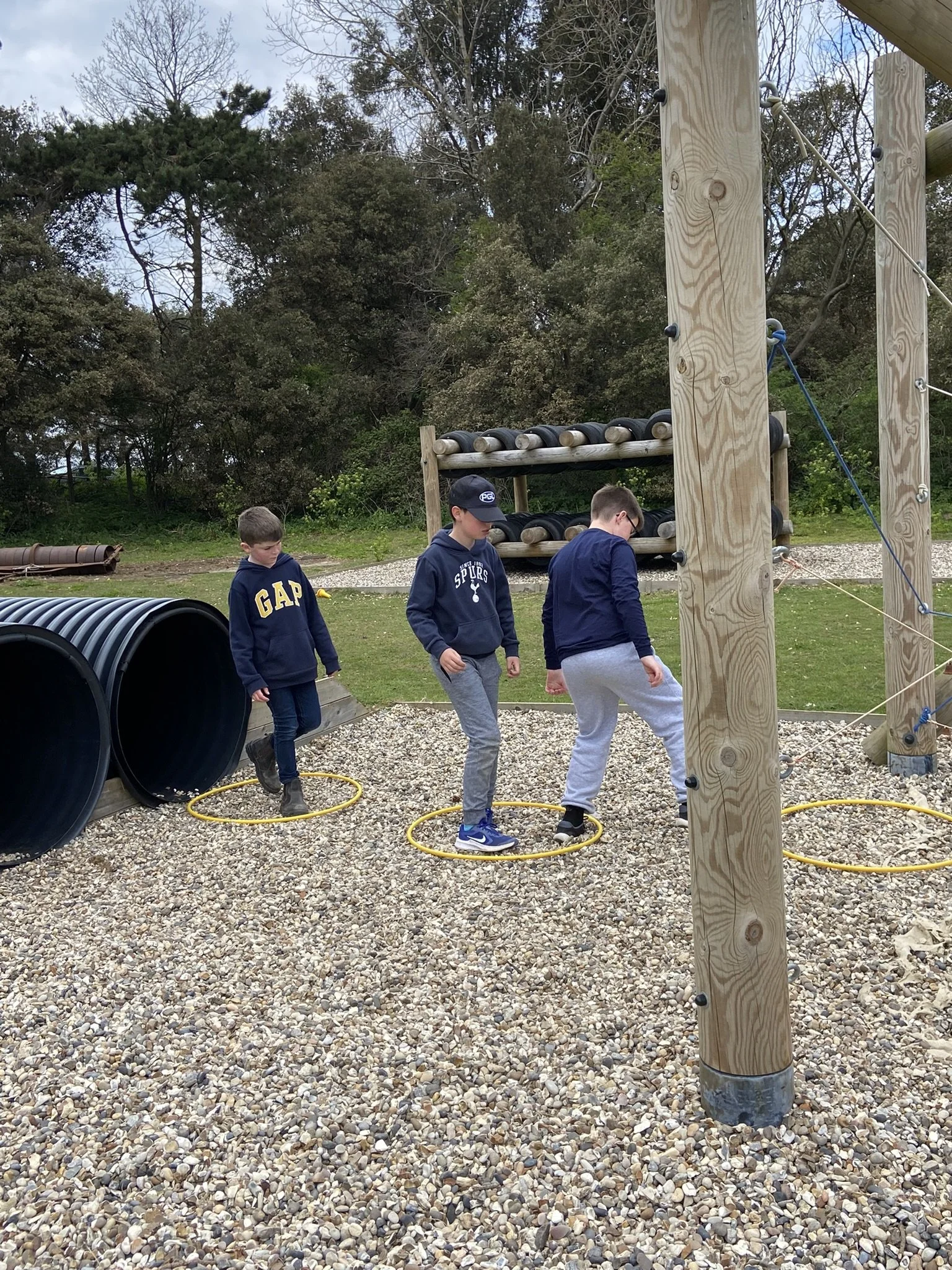 After drying off and putting on warm clothes we went to our final afternoon activity. This was a Challenge Course. This involved climbing through tunnels, over obstacles, under nets and on balance beams, avoiding the ‘lava’ on the floor.