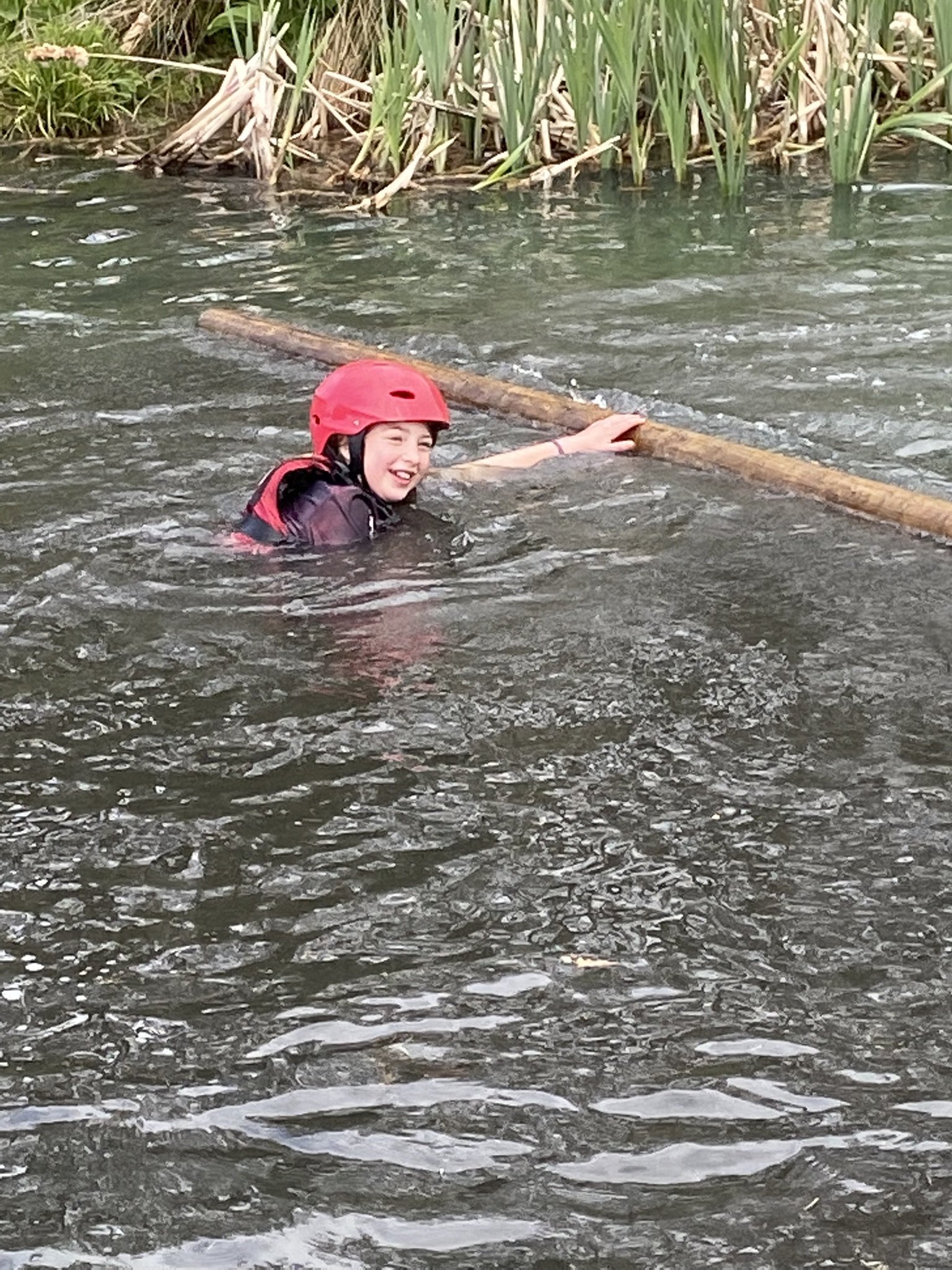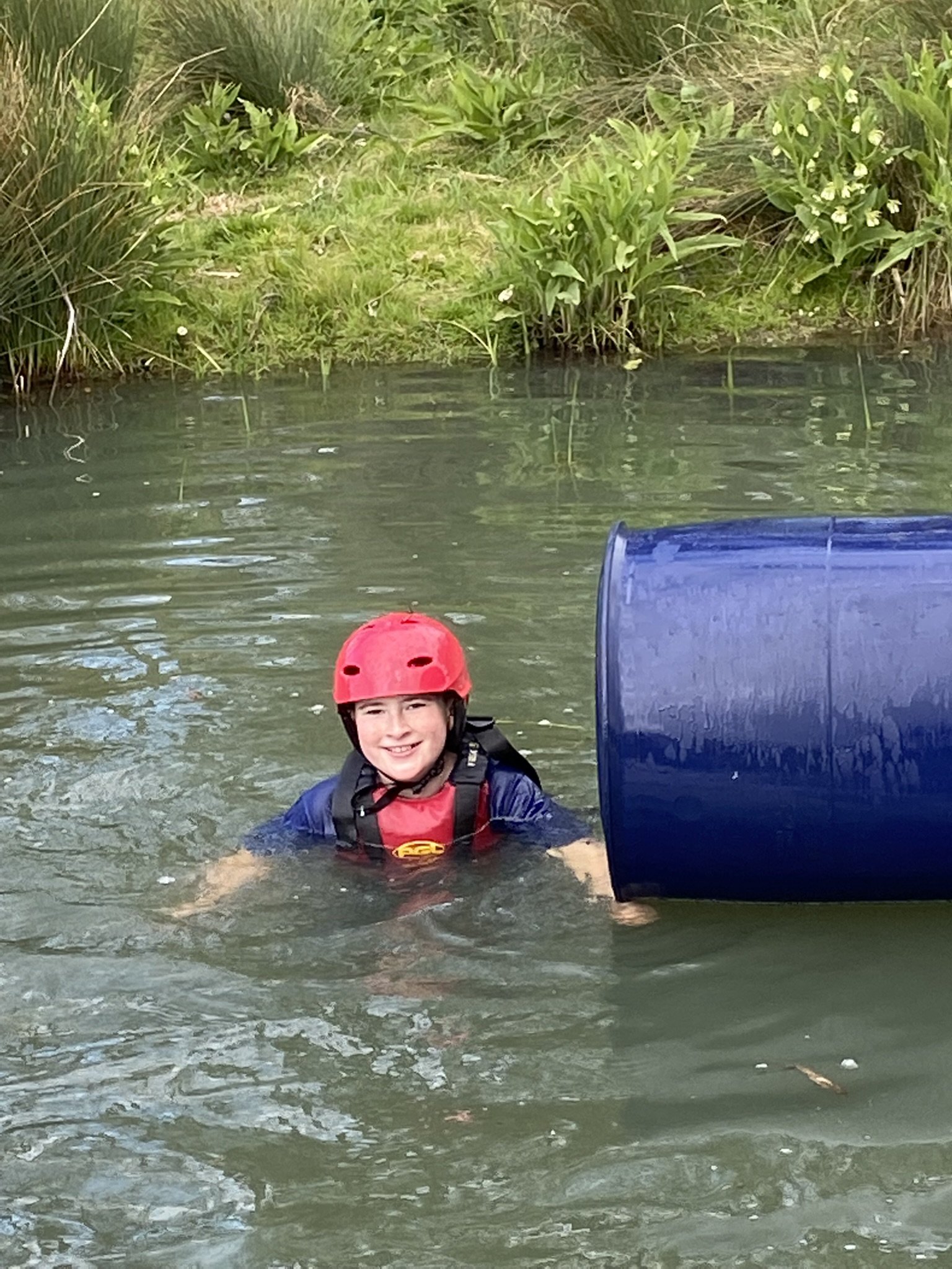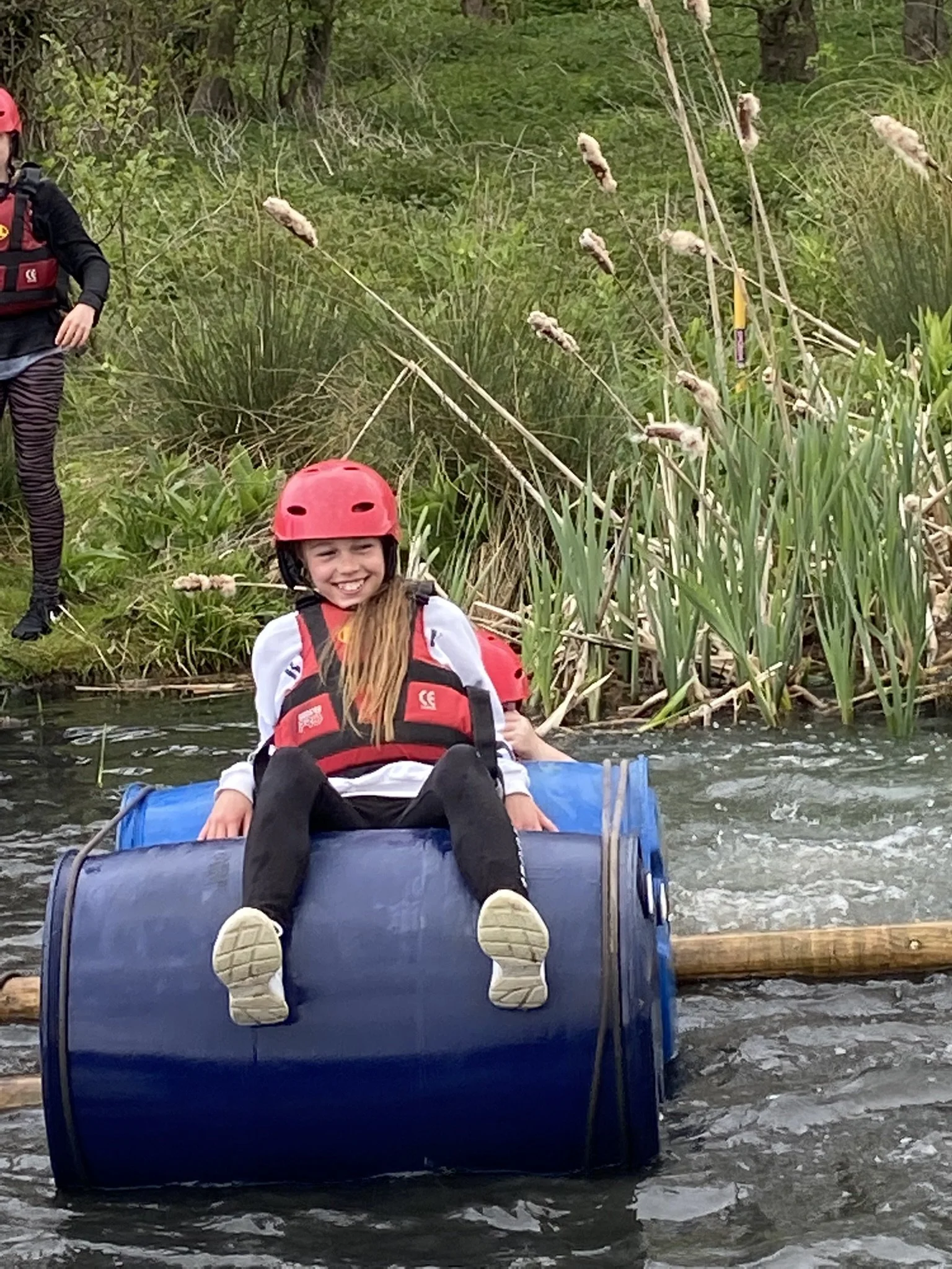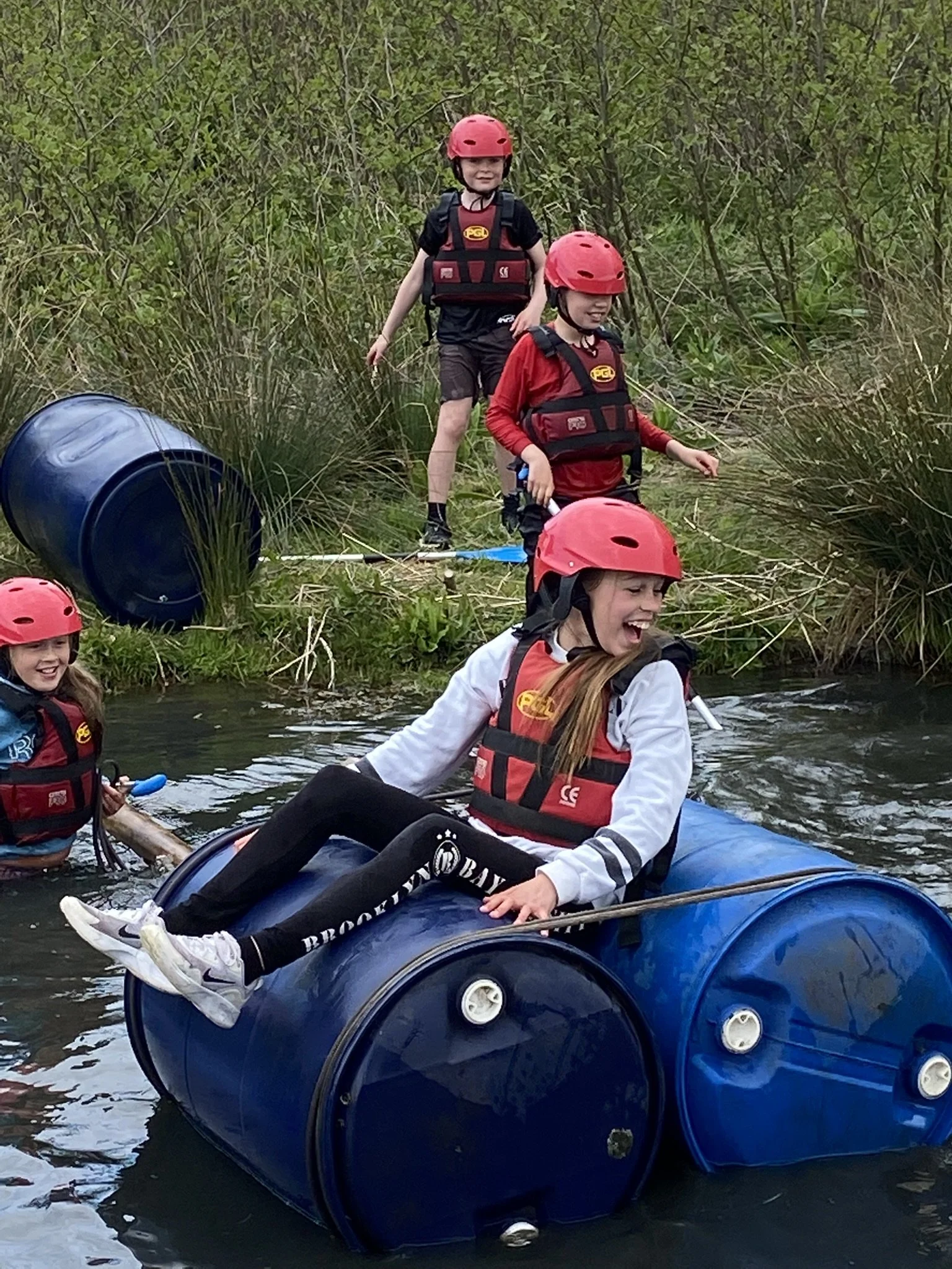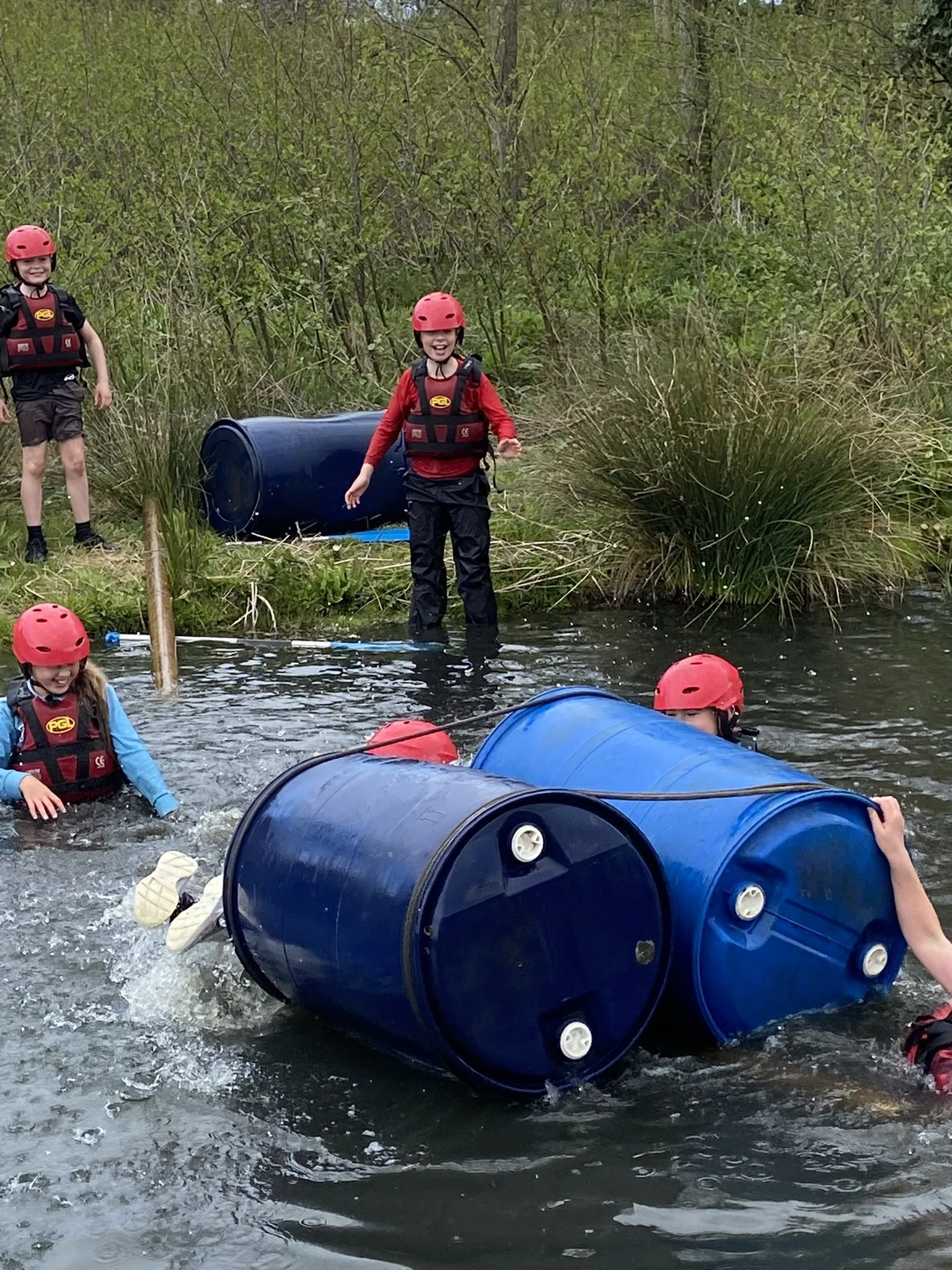 After a hot lunch we started our next fun activity. This was building a raft out of ropes, poles and barrels. Our raft actually floated for longer than we thought it might, but eventually we all got a dunking!