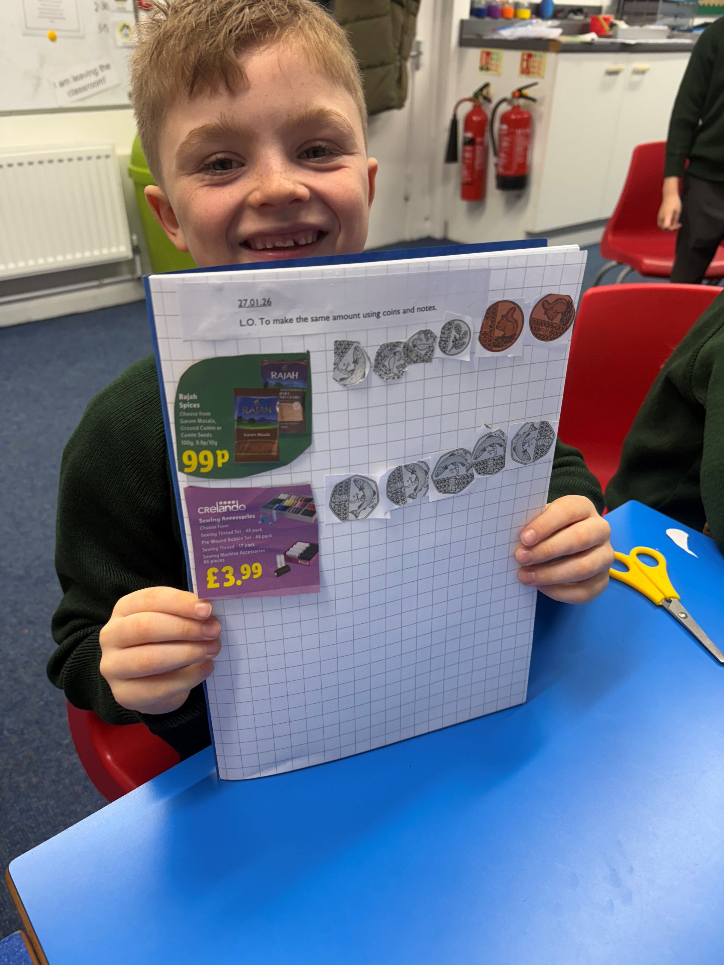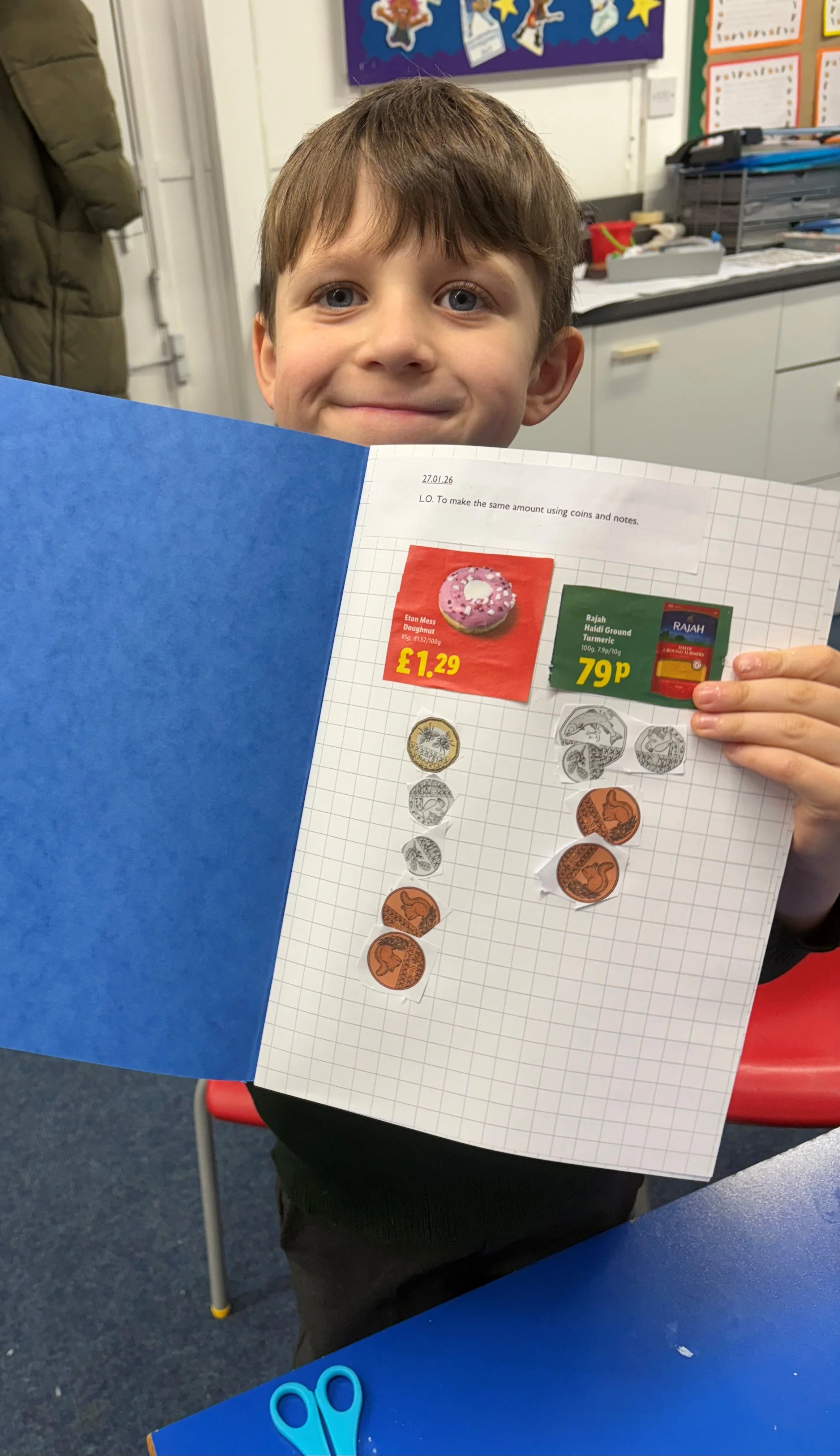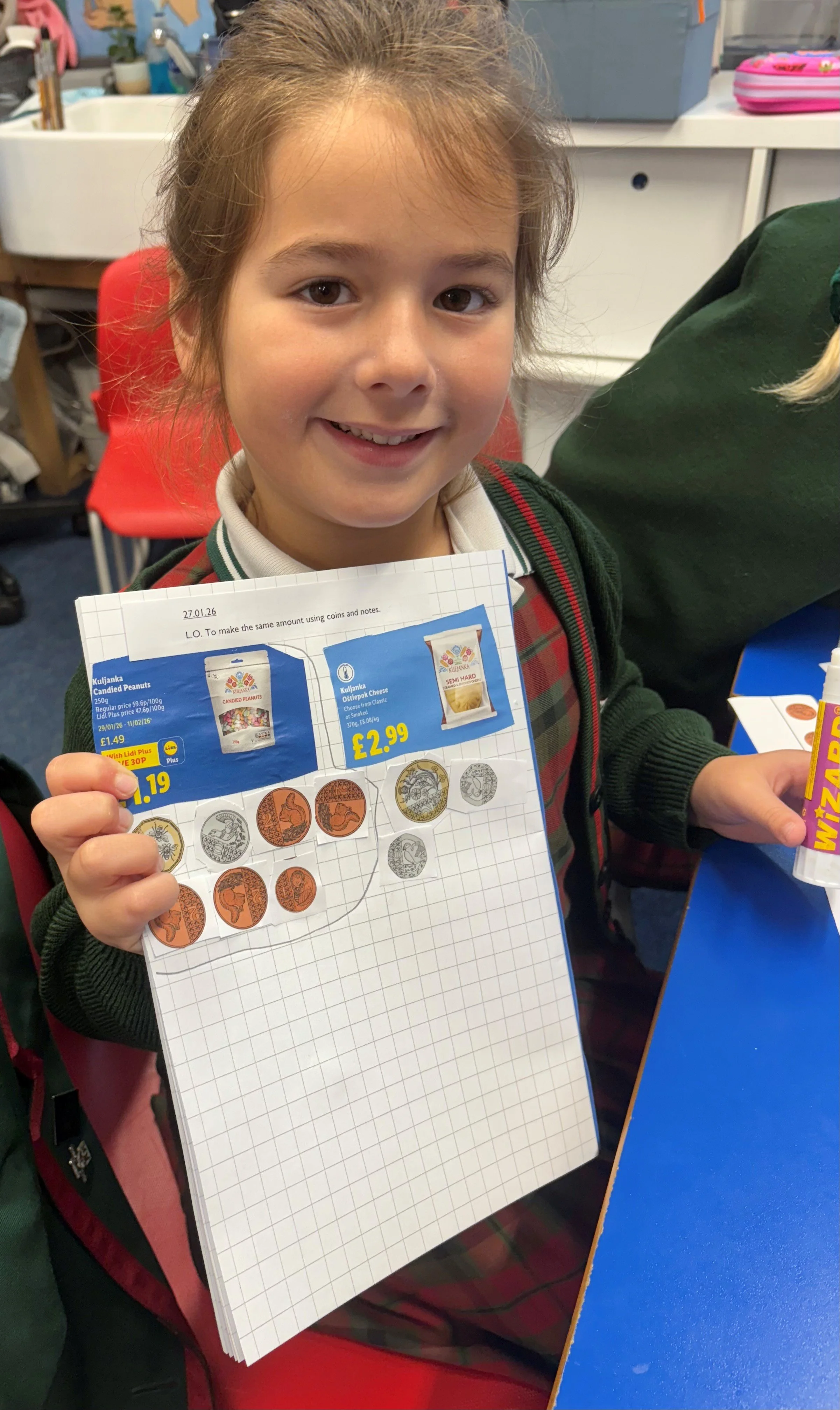 This week, Form 2 have continued to learn about money in their maths lessons and making different amounts using a variety of coins and notes. The children thoroughly enjoyed going ‘shopping’ and searched for items in a local supermarket magazine that they would like to purchase and then had to choose the correct amount of coins and notes to use to make their purchases. Form 2 have loved being shopkeepers and customers this week and have enjoyed getting a real hands-on experience of using coins and notes.