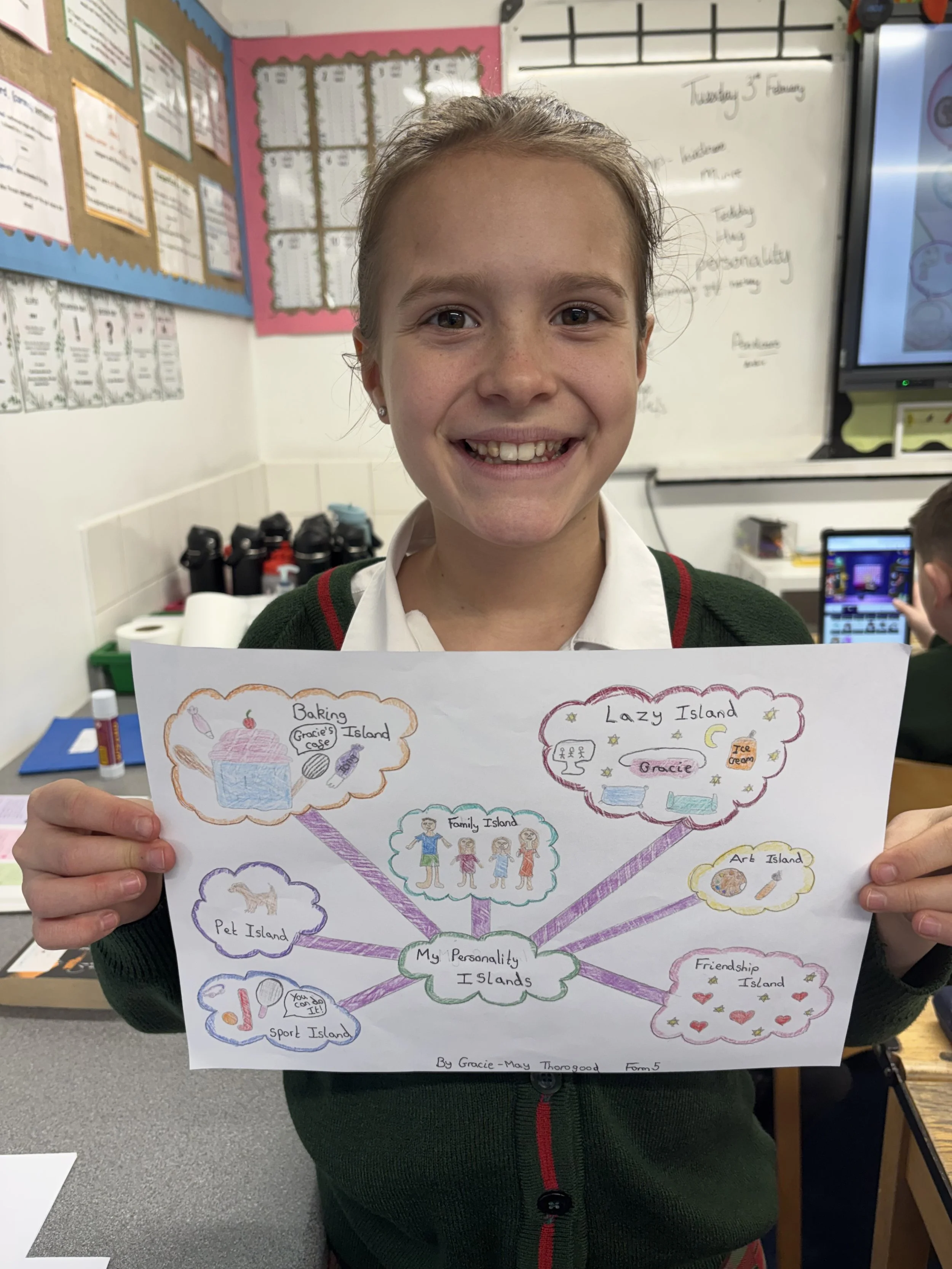 Form 5 have had a very reflective week during Mental Health Week and thoroughly enjoyed creating their own unique ‘Personality Islands’. They celebrated their individuality while also recognising and applauding one another’s strengths. It was wonderful to see the children use their creativity so thoughtfully, alongside the kind and encouraging way they supported each other throughout the week. They look forward to showcasing their work to the school on Friday.