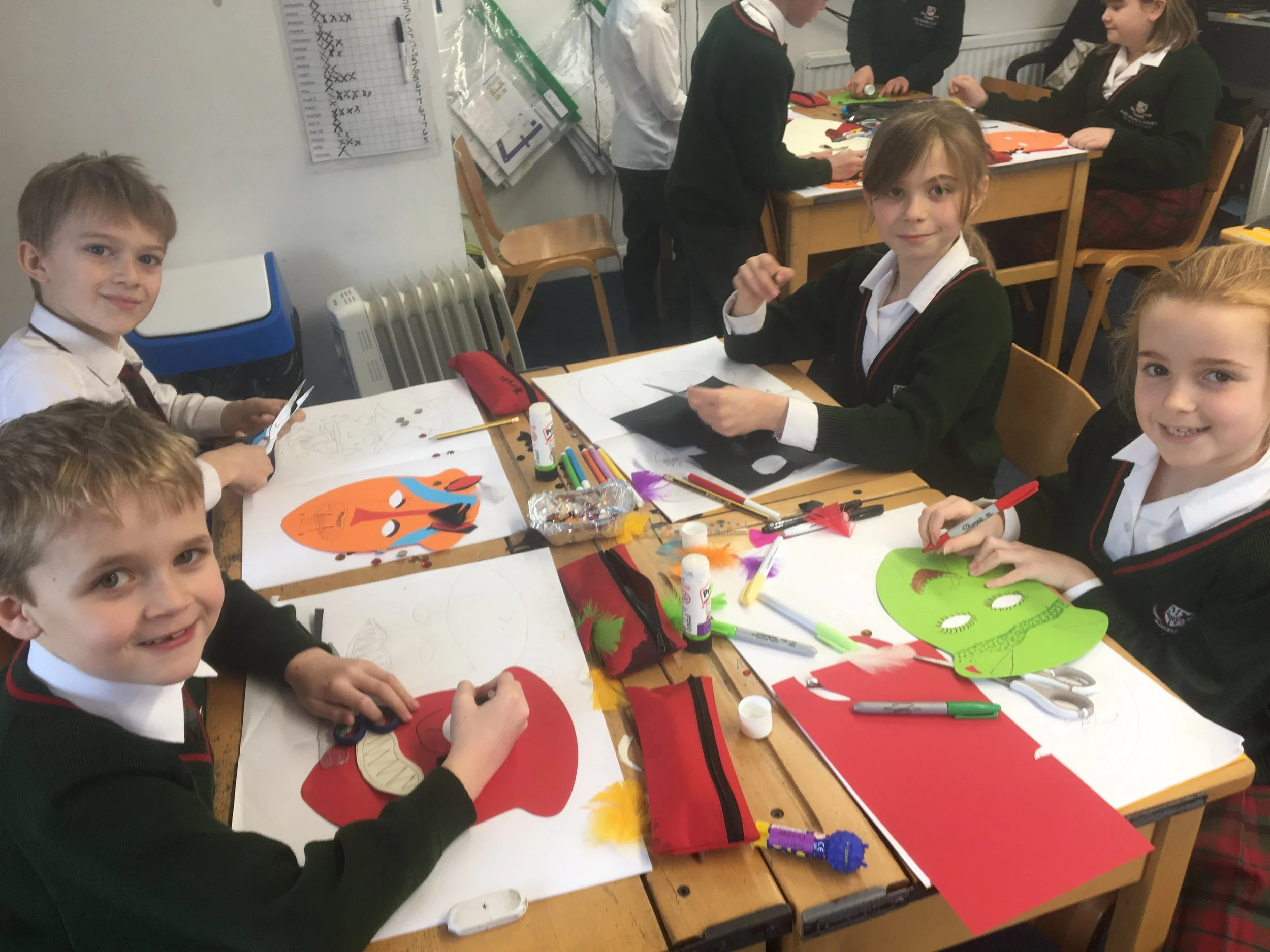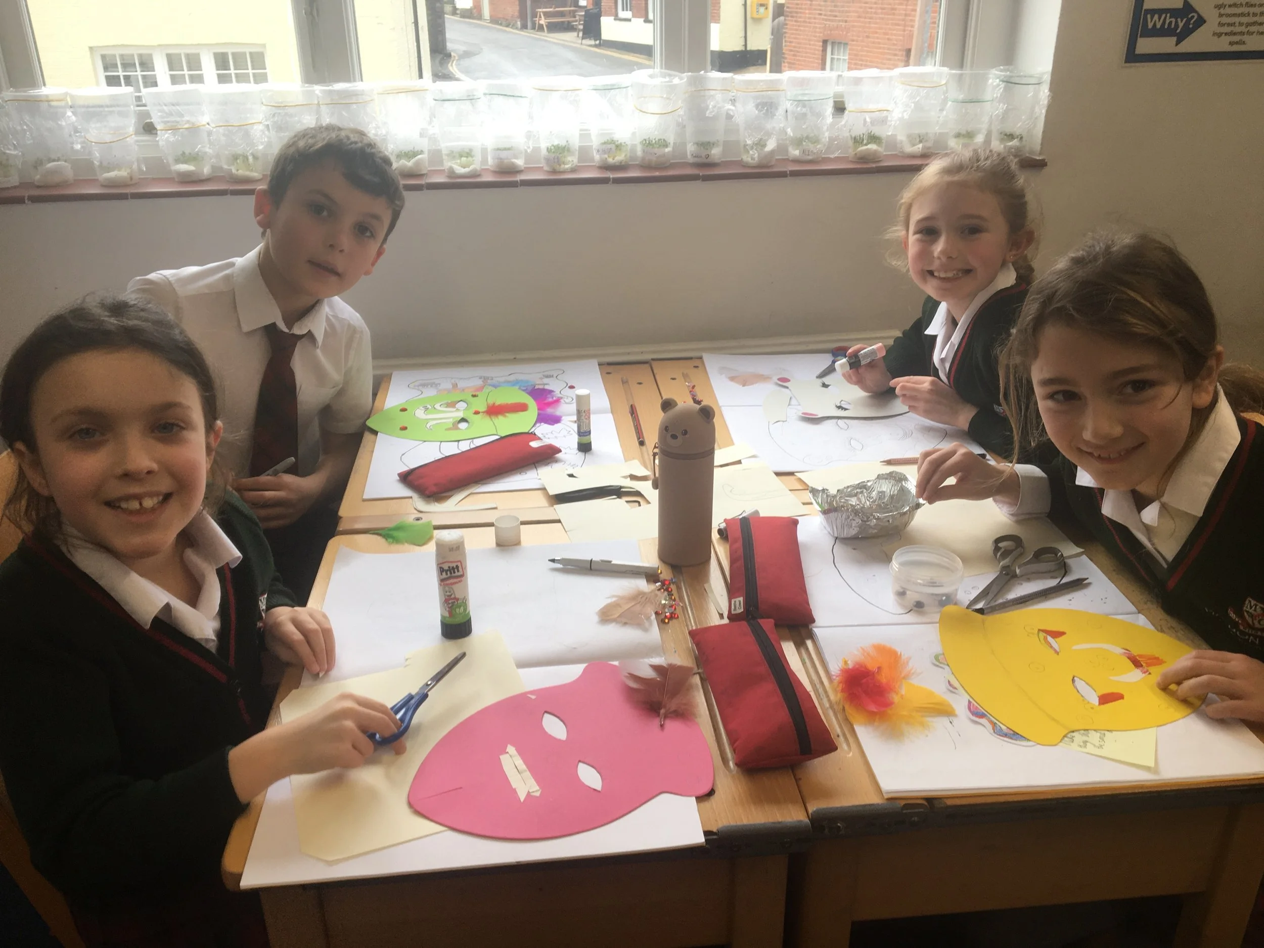 This week, Form 4 created a ‘cloud in a jar’ as part of their science studies on States of Matter. We also carried out an investigation to establish whether temperature has an effect on evaporation. Our results were not as impressive as we had hoped; the grey, cold, damp weather did not provide the dramatic changes we had hoped. We had far more success starting our Myan masks, we cannot wait to see how they look when they are finished.
