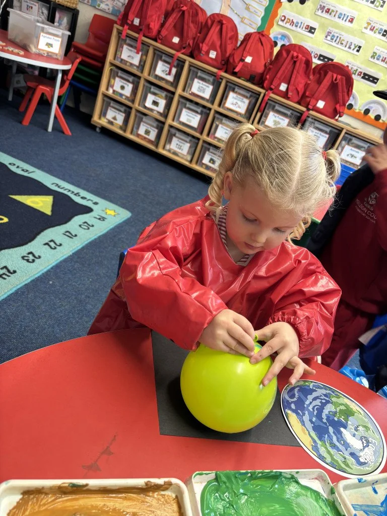 Pre-Reception have explored a range of fun activities including making their own planets using a balloon and discussing what is good and what is bad for our planet.